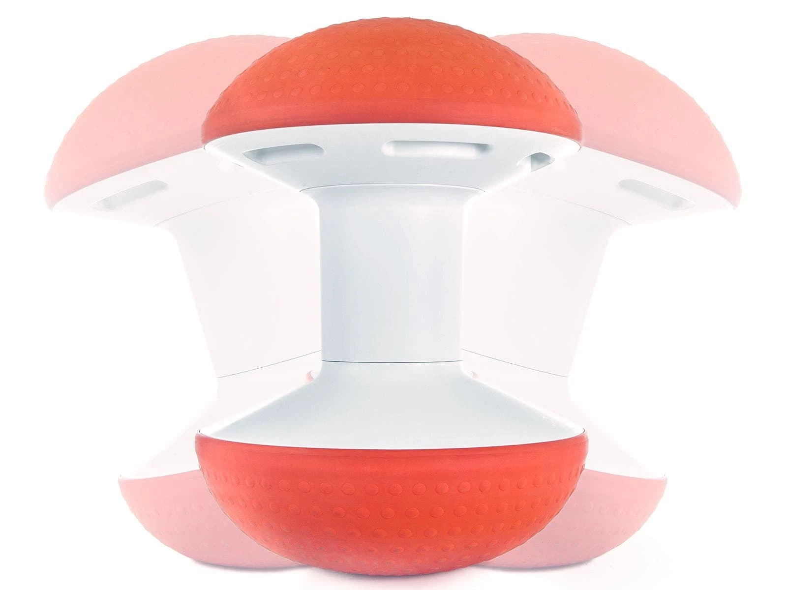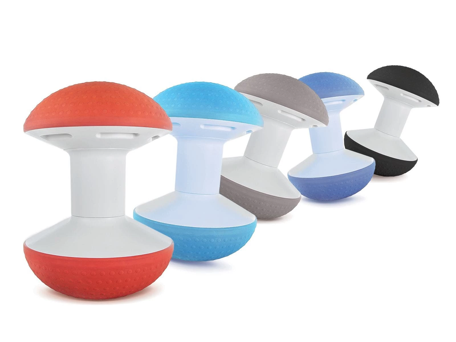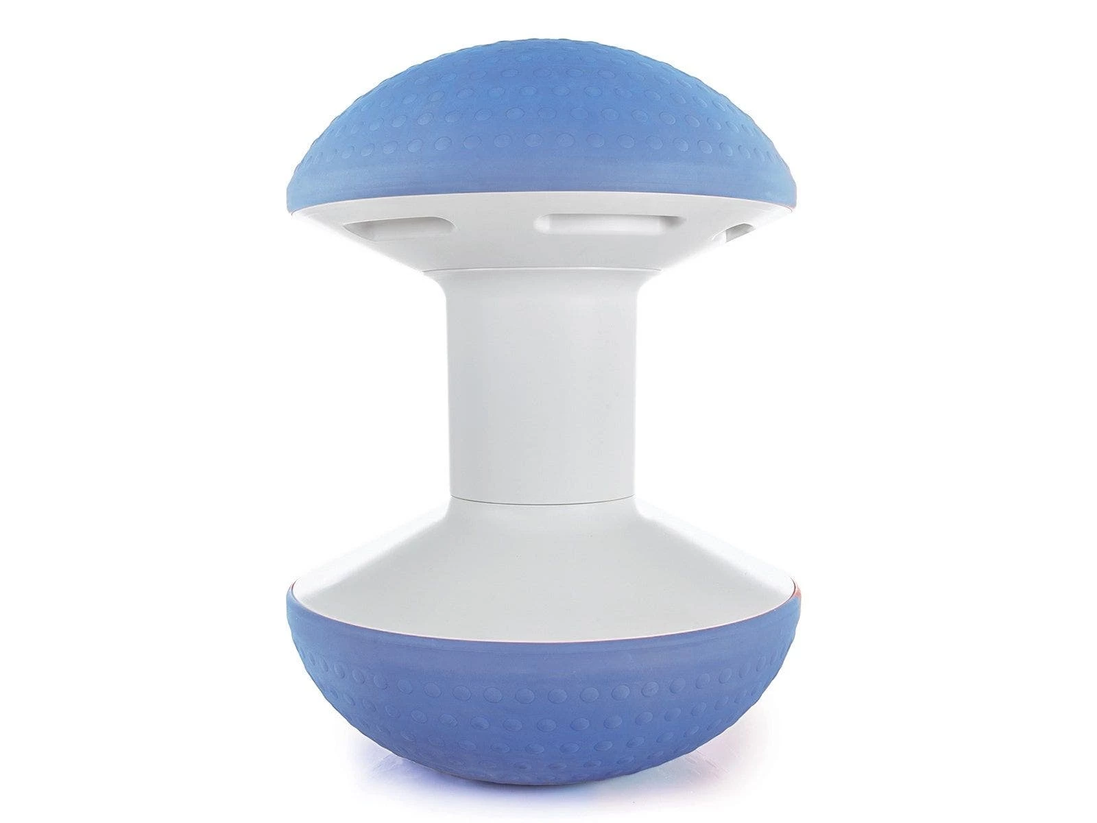 Two air-filled, dimpled domes contour to the body and provide a comfortable, slightly instable surface, similar to a stability ball, that also open the hips to promote circulation and posture. Its tilt and rocking motion also engage the core, legs, and spine and allow for light activity while sitting. Made from high-quality, eco-friendly plastic that contains no PVCs. Adjust the firmness of each dome to match each individual’s preference. A counterweighted base keeps it upright when lightly hit and stationary when not in use. Hidden handles in the top make it easy to transport and store. Ballo arrives inflated but includes an air pump to adjust inflation levels of each dome. 300 lb weight capacity. 24-1/2″H x 18″W; 13-1/2 lb each. Available in a Set of 4 (1 ea Sky Blue, Gray, Blue, and Black) or individually.