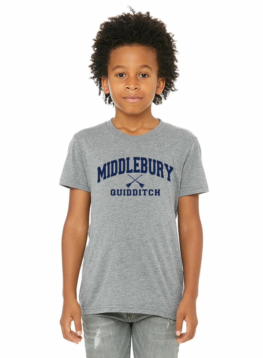 Middlebury Quidditch youth tee fits like a well-loved favorite, featuring a crew neck, short sleeves and our super-soft triblend fabrication.
