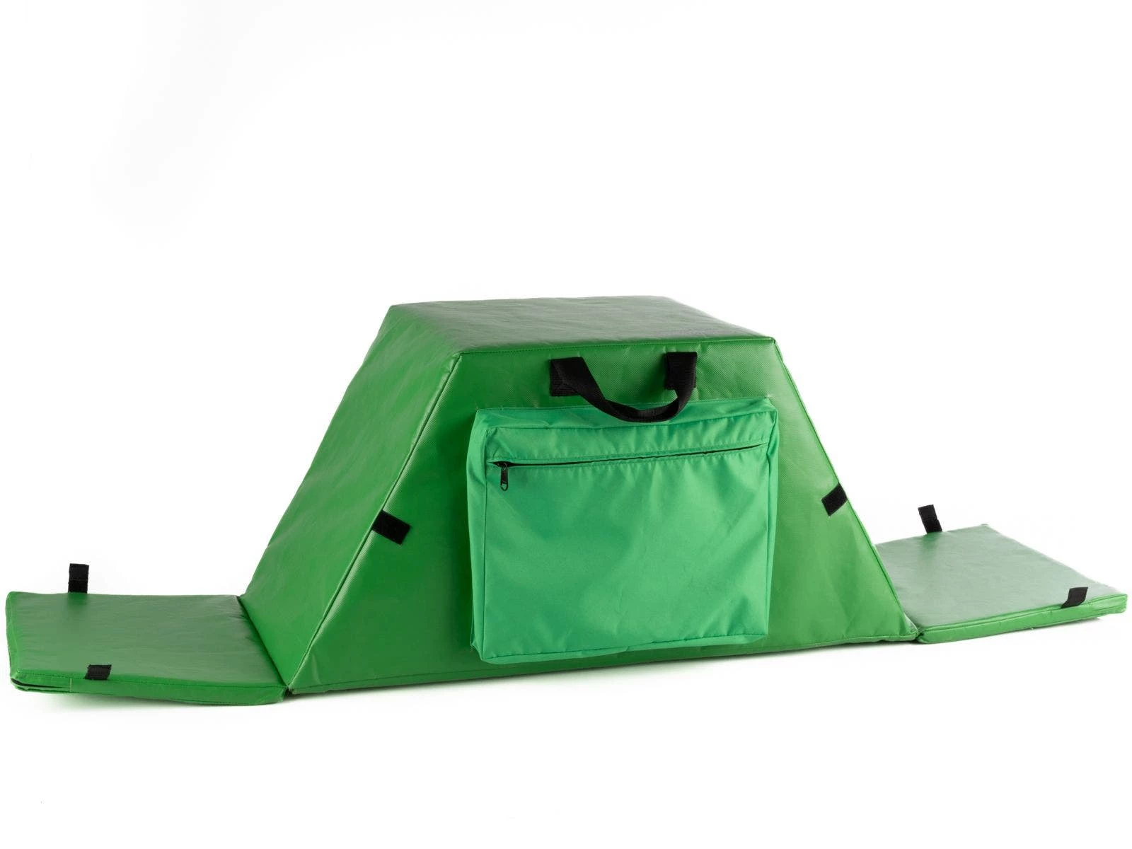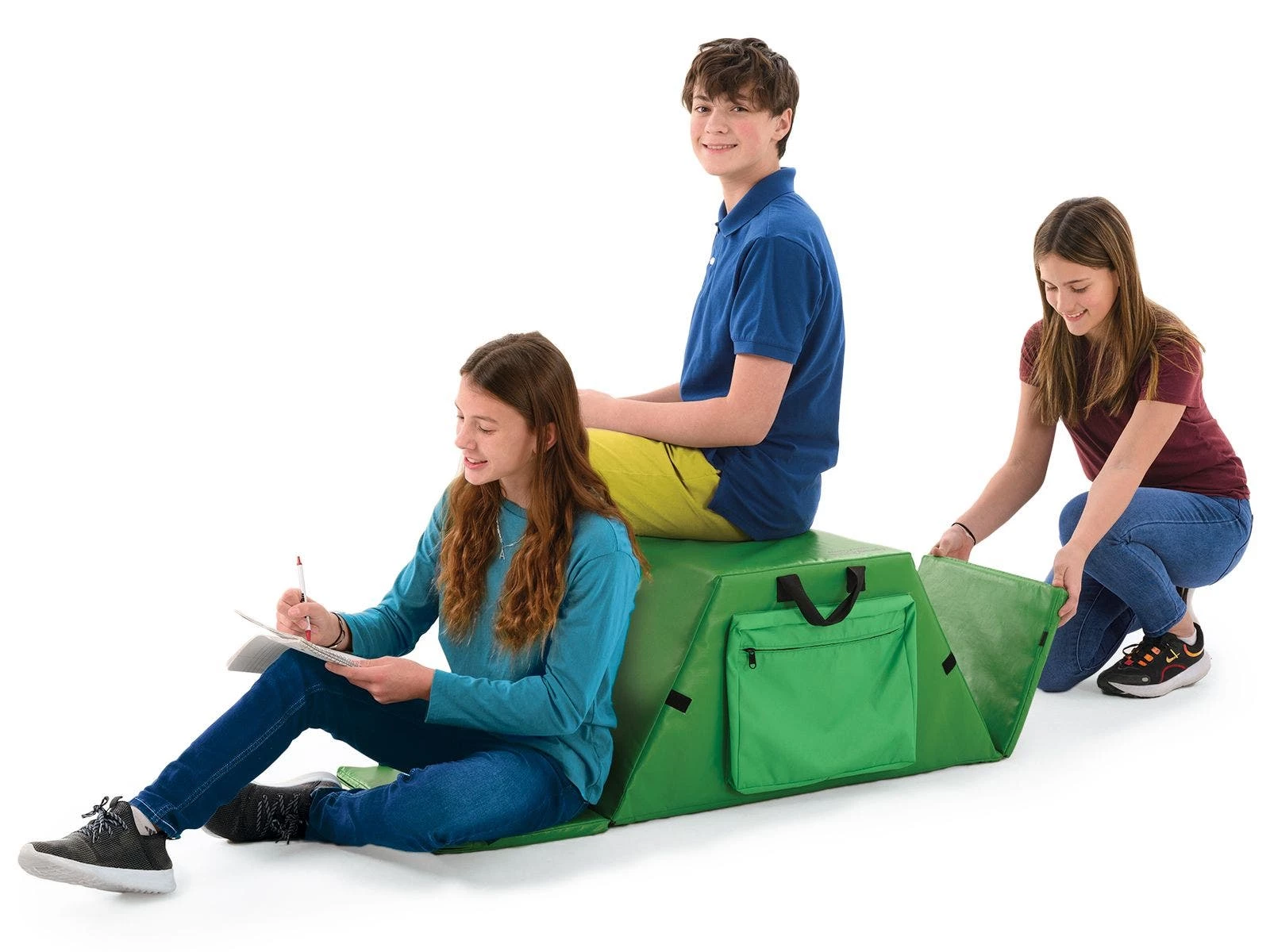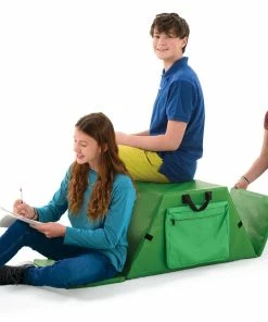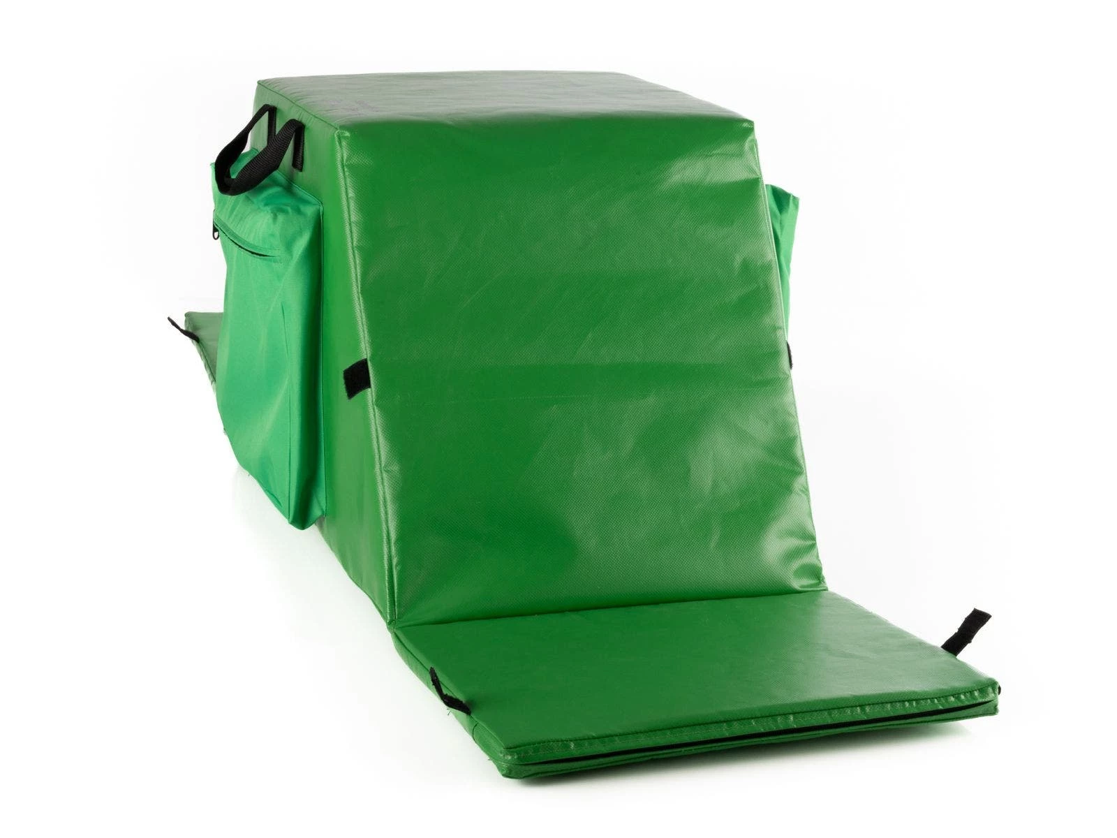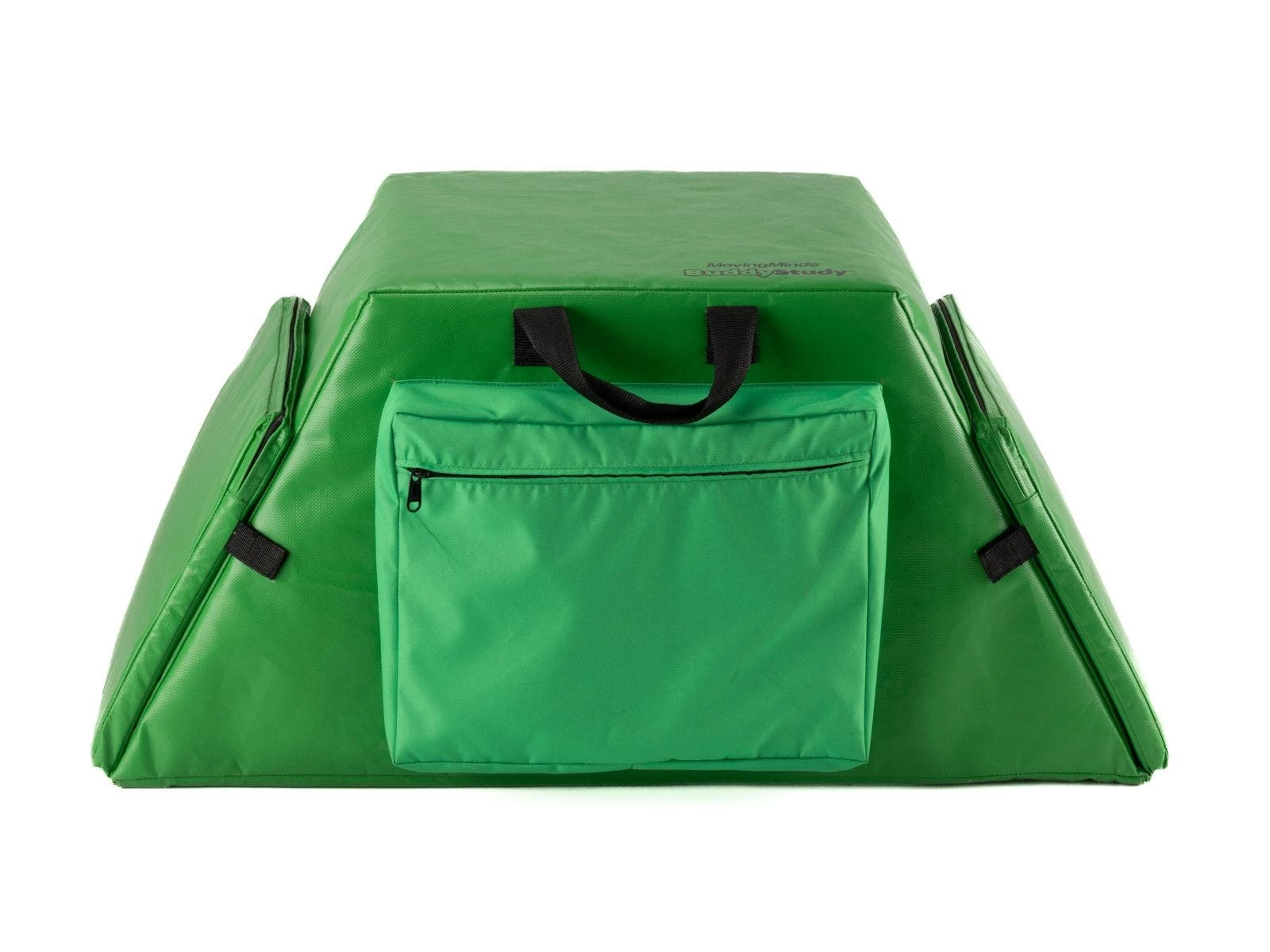 Folding buddy seat makes it easy to accommodate 3 students at one time. Fold down a 12”L x 15”W x 1” thick panel on either end and have another student sit on the 15”L x 15”W seat on the top. Quickly reattach the end seats via hook-and-loop fasteners between use. Two 14”W x 11”H x 2”D polyester pockets—one on each side—provide convenient storage and include a zipper to keep contents secure. Polyethylene foam seats are wrapped in vinyl for long-lasting use and easy cleaning. Indoor/outdoor chair includes 2 handles for easy transport. With end panels extended, the entire seat is 55-1/4”L. When folded, it is 31-3/4”L x 15”W x 15”H; 7-3/4 lb. Available individually or in a Set of 6.