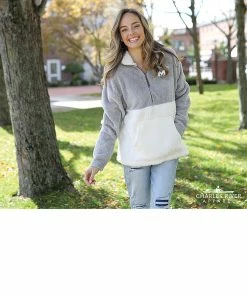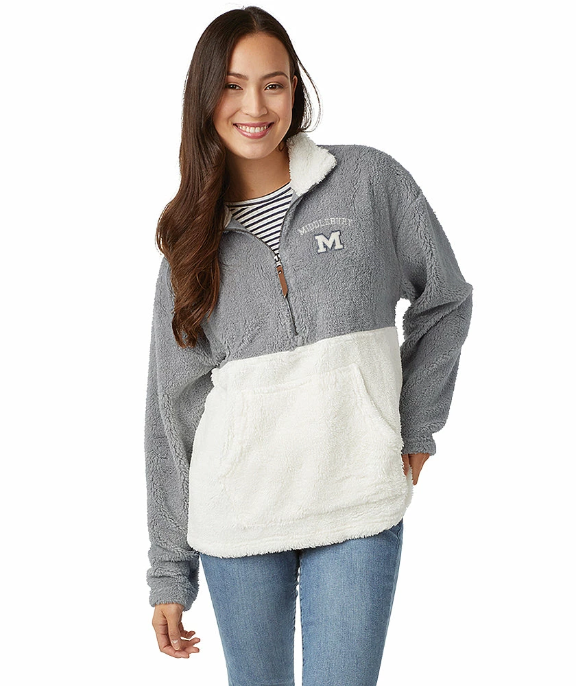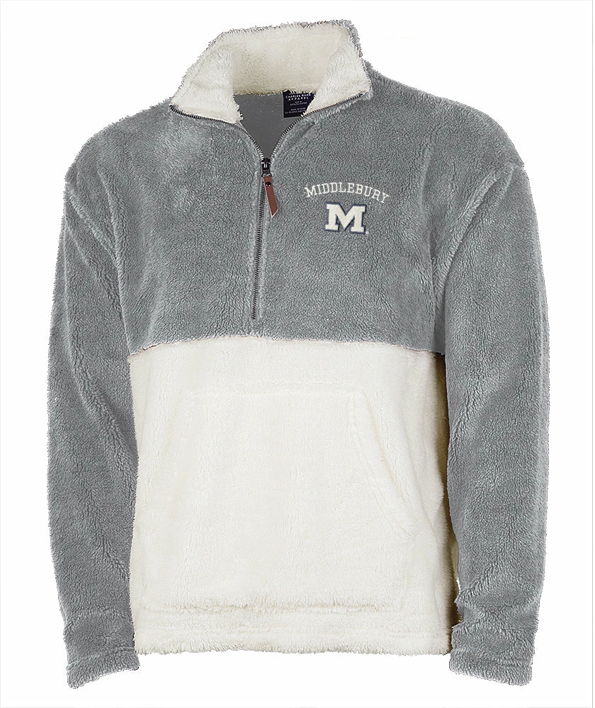 - Quarter zip mock neck with contrast fleece on inside of collar