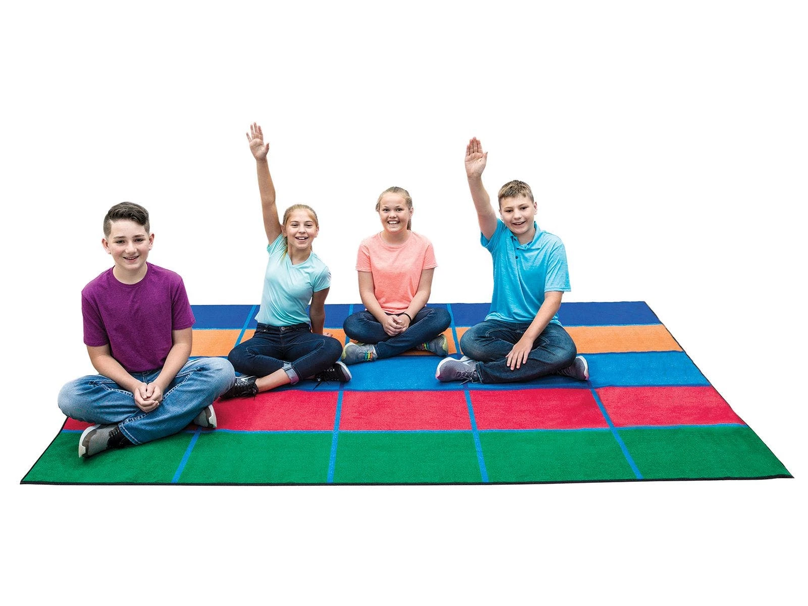 Colored rows easily organize students into groups for team activities and help define personal work areas. Floor seating gets students out of their seats and naturally promotes collaboration. The durable nylon 3/8″ thick pile stands up to routine use and is stain-resistant so each rug keeps a new appearance for years. The backing prevents wrinkling to ensure a flat area and prevent a tripping hazard. Rugs meet Class 1 Flammability Rating. Seating capacity of each listed below.