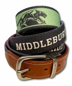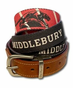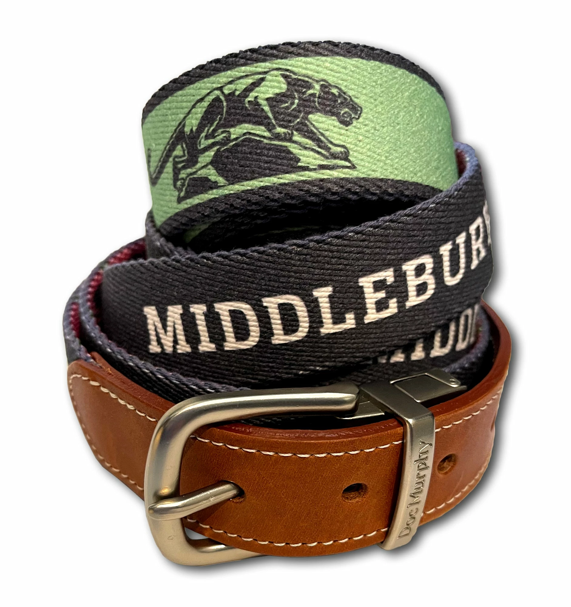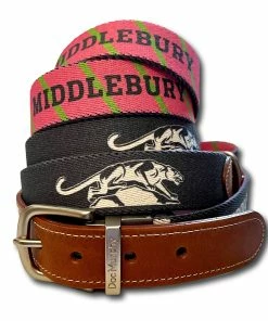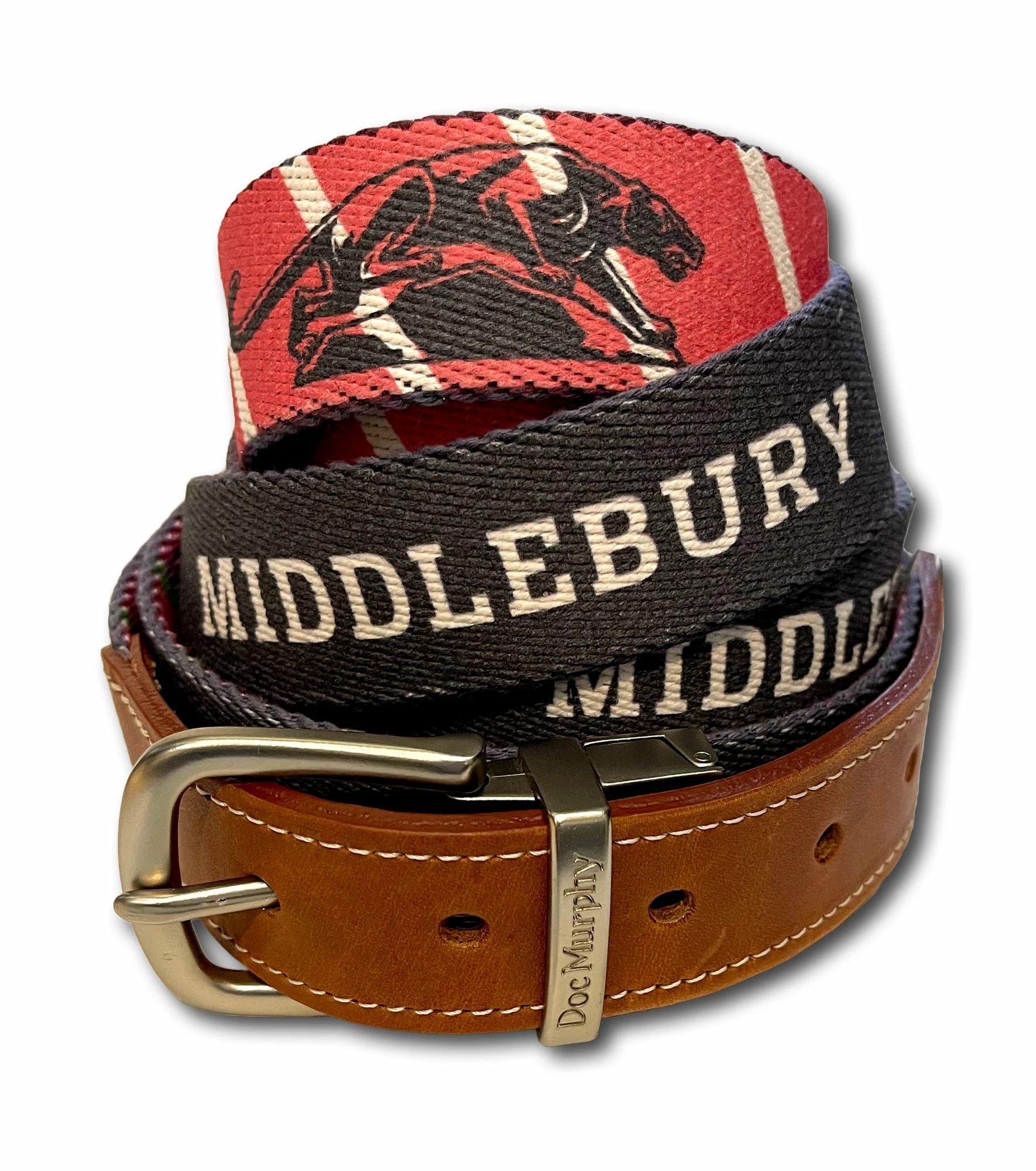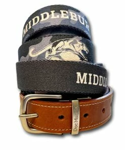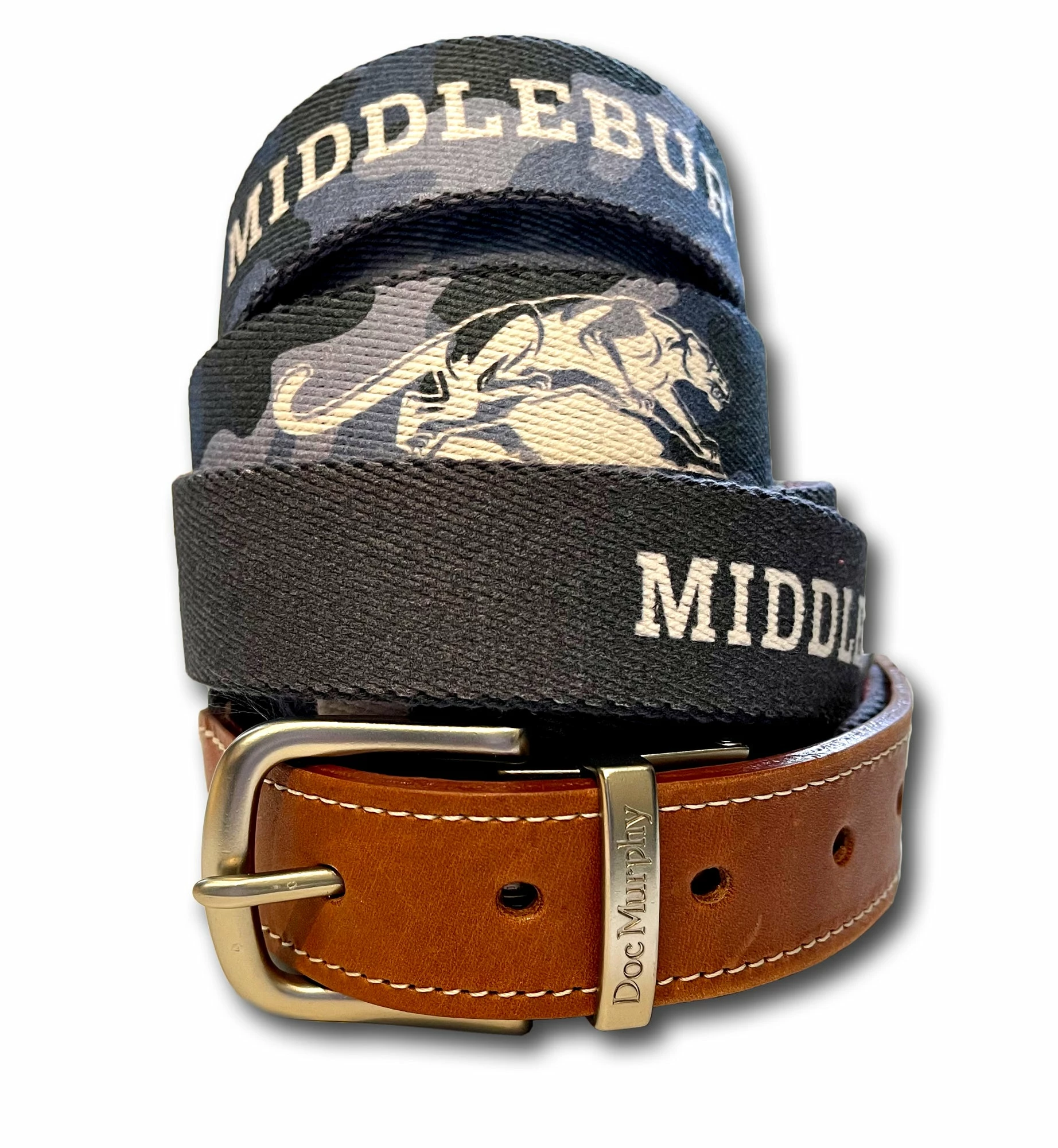 Doc Murphy’s Collection: CustomCutâ„¢ and reversible. The 1st side of each belt is the classic Middlebury College Navy with Panther logo & “MIDDLEBURY”. The 2nd side of each belt comes in 4 different options: Color/Pattern – Nantucket Striper/Yacht Rocker/Midd Camo/Snow Bowler.
