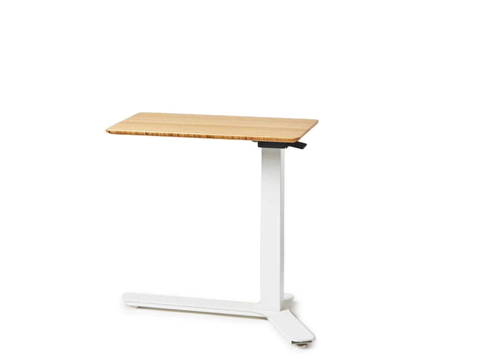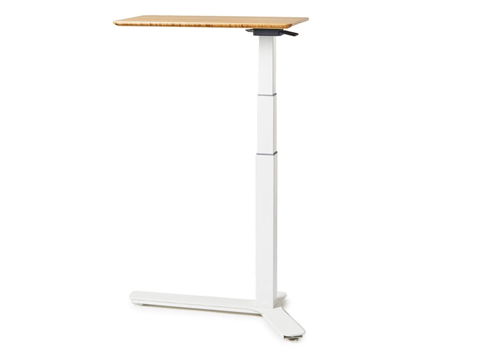 Students use a lever to easily adjust the height of this desk to suit their individual needs. A pneumatic cylinder quickly and quietly changes the height from 27-1/4″ to 45-1/2″H. The compact, sleek design features a 27″L x 16″W desktop that easily fits into smaller spaces or allows for more desks in one space. Environmentally-friendly bamboo top sits atop a sturdy white steel base. Supports up to 25 lb. Desk is 50 lb.
