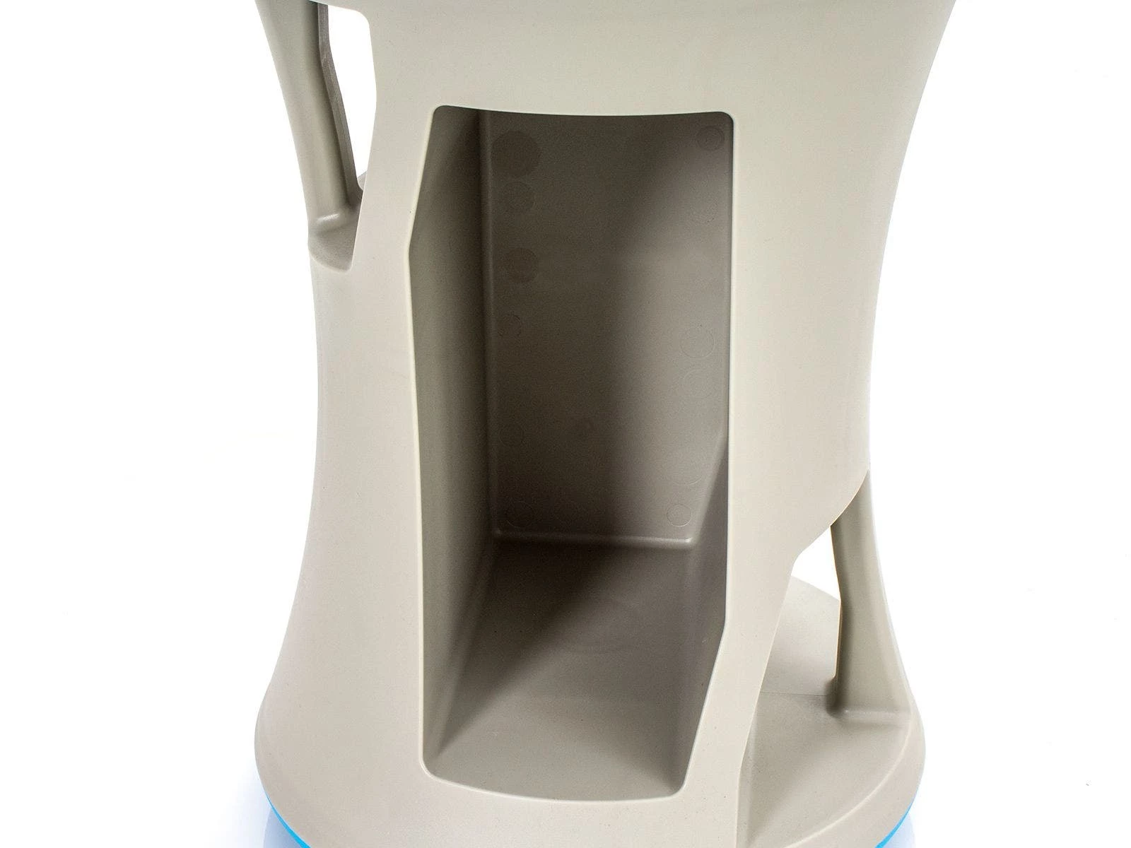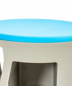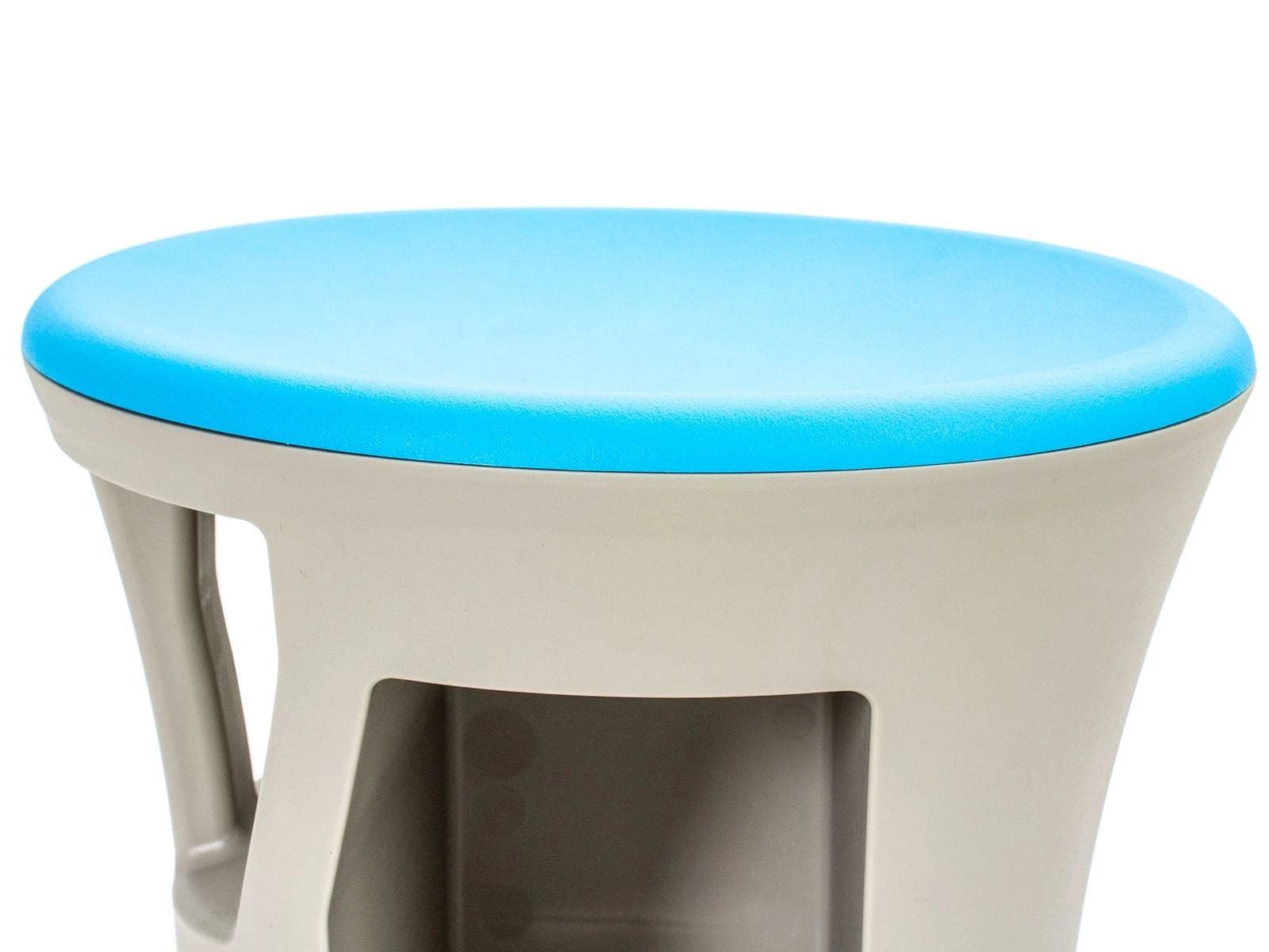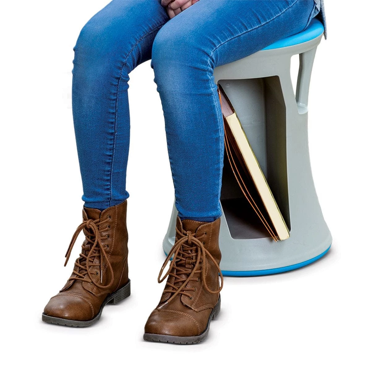 Set this 2-in-1 stool with the flat end down for a traditional stool with a dome top, or flip it to create a subtle rocking motion while seated. A slip-resistant seat on each end prevents the stool and students from slipping on all surfaces. Plastic construction includes built-in storage for books. Integrated handles allow for easy relocation. Stack stools for compact storage. Supports up to 250 lb. Set of 5 includes 1 of each color. Also available individually. 17″H x 12″ dia; 7 lb.