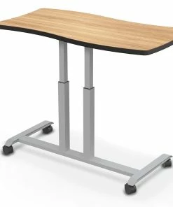Students in elementary to high school can choose to sit or stand at this easy-to-adjust table. Using a single-handed lever, table height effortlessly adjusts from 26-1/2″ to 42-1/3″H aboard dual pneumatic lift columns. Wavy, rectangular top has no sharp edges, while the 59″L x 32″W surface area provides students with ample room to collaborate. High-pressure laminate, 1-1/8″ thick top with a black edge band is available in a gray or oak woodgrain, or with a dry-erase surface to encourage brainstorming. Powder-coated steel base is long-lasting and features four 3″ dia casters (2 locking) to easily relocate the table when needed. Assembly required. Supports up to 300 lb. Table is 94 lb.
