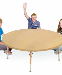 Students in elementary to high school can choose to sit or stand at this easy-to-adjust table. Using a single-handed lever, table height effortlessly adjusts from 26-1/2″ to 42-1/3″H aboard dual pneumatic lift columns. Wavy, rectangular top has no sharp edges, while the 59″L x 32″W surface area provides students with ample room to collaborate. High-pressure laminate, 1-1/8″ thick top with a black edge band is available in a gray or oak woodgrain, or with a dry-erase surface to encourage brainstorming. Powder-coated steel base is long-lasting and features four 3″ dia casters (2 locking) to easily relocate the table when needed. Assembly required. Supports up to 300 lb. Table is 94 lb.