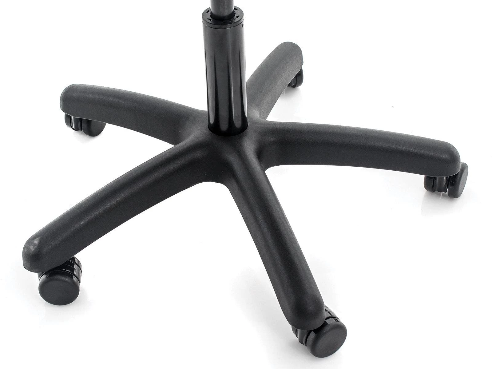 The heavy-duty base is made of steel and plastic for dependable, long-lasting use. Five 2″ dia swivel casters make it easy to move the stool around the room. The stool requires minimal assembly and supports up to 300 lb. With the back, the stool is 24″L x 24″W x 37-1/2″ to 47-1/2″H; 24 lb.