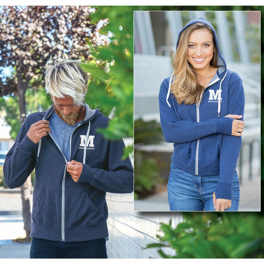 This Zip Hood is a yarn dyed fleece that gives it a beautiful heather and contrast french terry interior. Fit and finish are the trademarks of our Unisex Midweight French Terry Zip Hood, Slim unisex fit. A fitted body in beautiful color, antique metal trims, contrast french terry interior, and contrast natural-colored exposed zipper tape make it the perfect sweatshirt for all occasions. We use premium ring-spun cotton: 7.5 oz (250 gm) pre-laundered 70% cotton/30% polyester blend french terry.