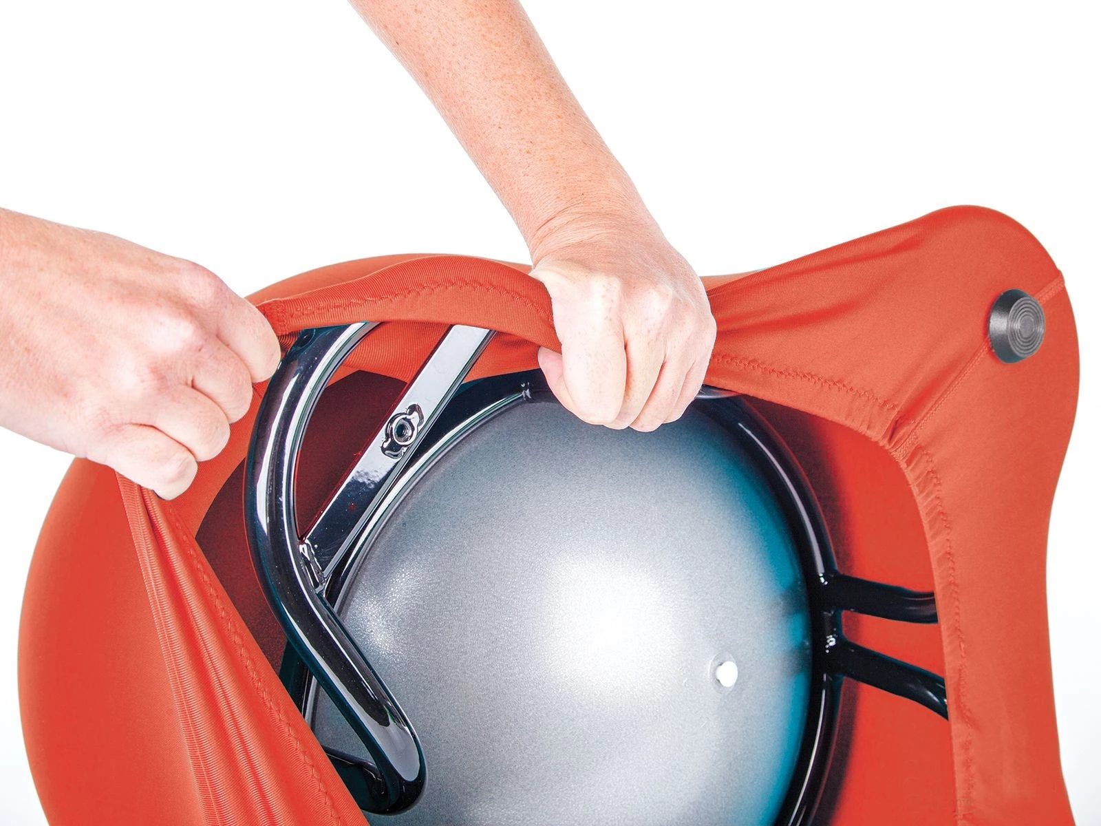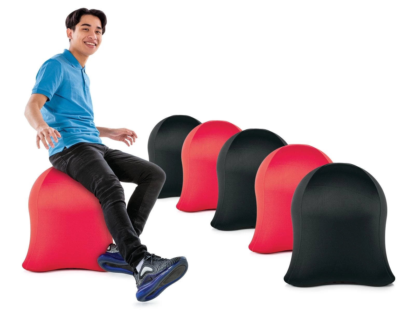 A Spandex cover that can easily be removed and handwashed is ideal for large settings with multiple students. Lightweight steel frame and anti-burst PVC ball stand up to routine use. Includes 4 plastic feet and inflation pump. Chair supports up to 485 lb. Choose the Complete Set that includes 3 ea Red, Black. Both colors also available individually. 18½” (47 cm) overall dia; 10 lb.