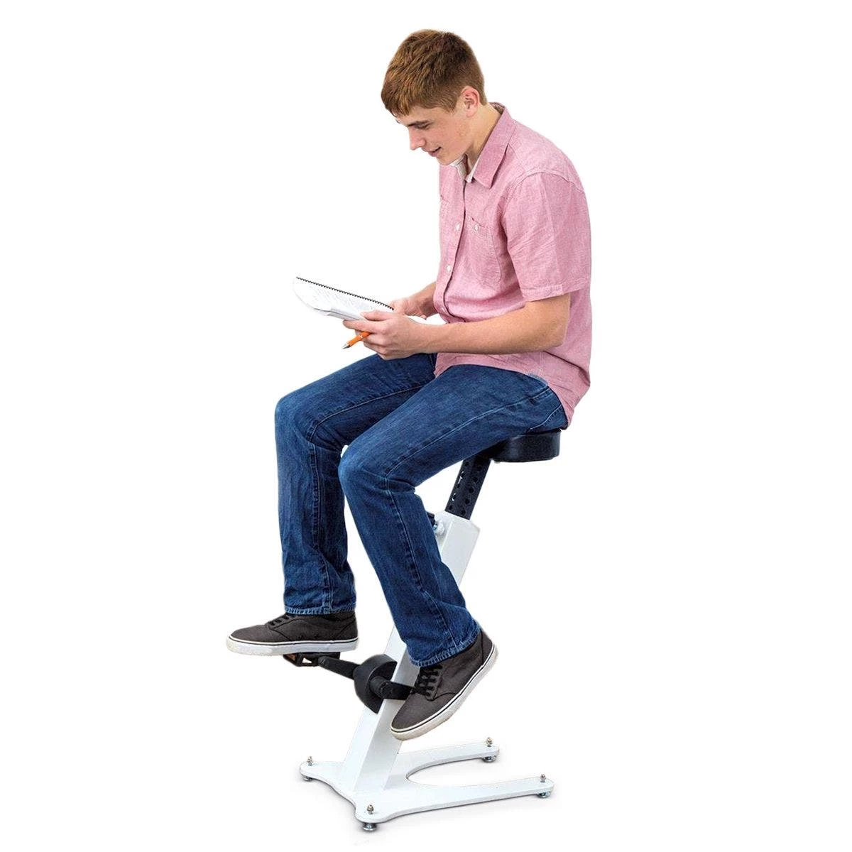 Add these stools to existing high-top desks or tables and give students a chance to keep moving, even as they sit in class and do their work. Pedaling is a non-disruptive activity that helps increase brain activity, allowing for better focus and improved productivity. Durable powder-coated steel frames. Pedals are textured for safety. Smooth, quiet flywheel. Adjustable seats accommodate a range of students and workspaces, and are shaped and padded for comfort. Choose Small (Blue) 18”L x 17”W x 25″ to 31″H, 52 lb; or Large (White) model 18”L x 17”W x 28” to 31″H, 55 lb.