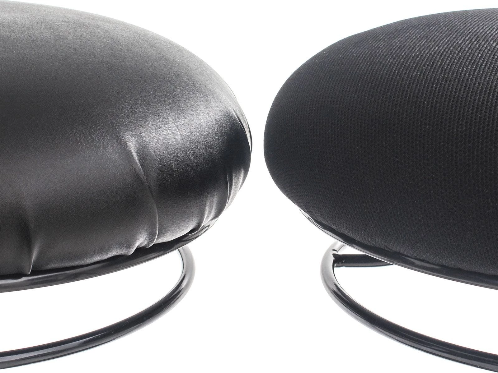 The padded seat features a fabric cover or an easy-to-clean leather cover. Use the 360° adjustment ring to quickly raise or lower the seat to the perfect height. The seated chair adjusts from 18-1/2″ to 27″H, while the standing chair adjusts from 21-1/2″ to 32″H. Both are 15 lb and have a 14″ dia seat, 15″ dia base. Each chair supports up to 350 lb and requires minimal assembly.
