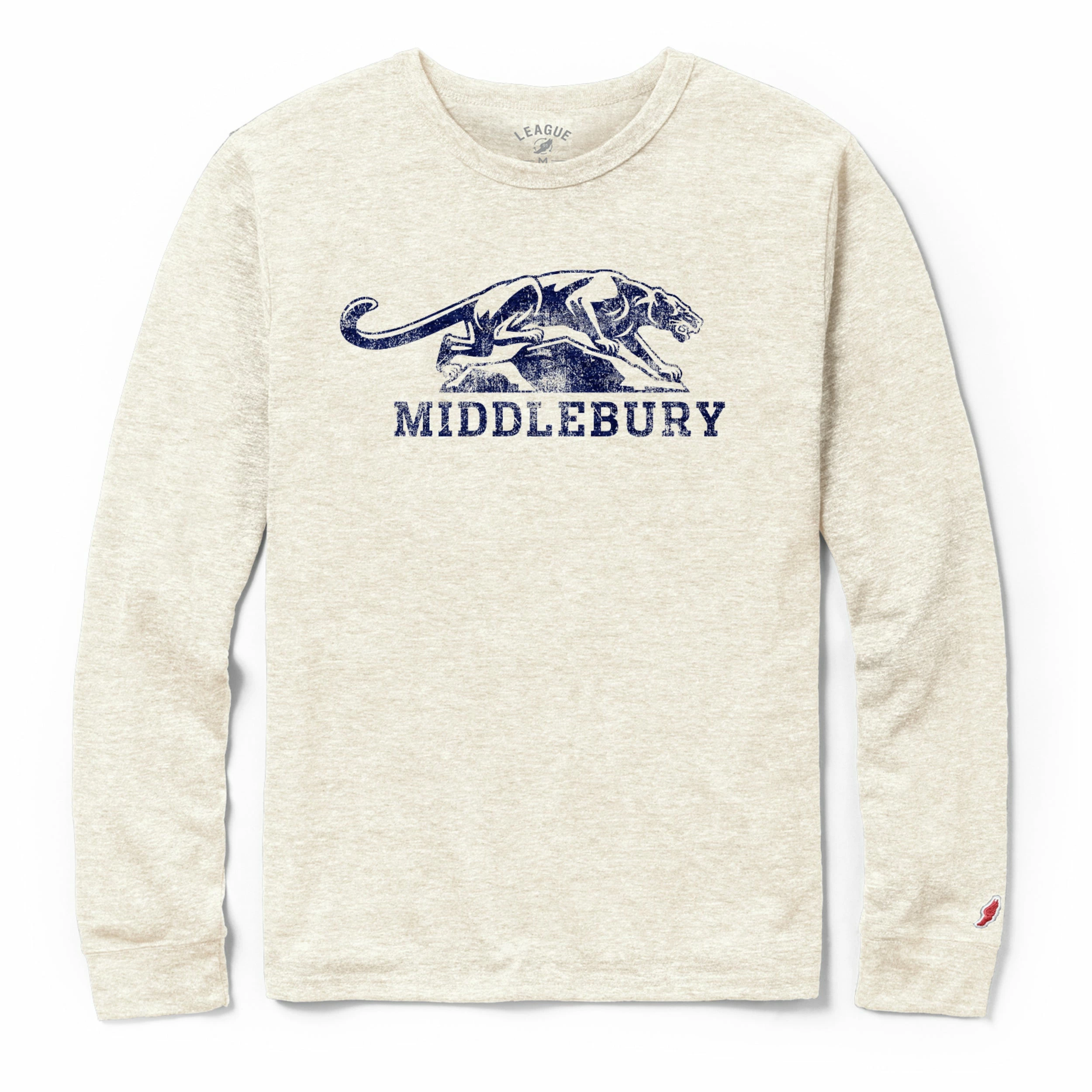 Middlebury College Panther Long Sleeved T-Shirt.   This tee is made with our luxurious tri-blend jersey fabric.