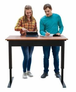 A pneumatic air cylinder makes it easy to adjust the height of this desk from 27-1/2″ to 44-1/2″H. With no power outlets required, you can place this desk anywhere it’s needed in the classroom. The high-quality laminate desktop features a teak finish that is scratch resistant. Beveled edges offer enhanced comfort when students rest their arms on the edge of the desk.