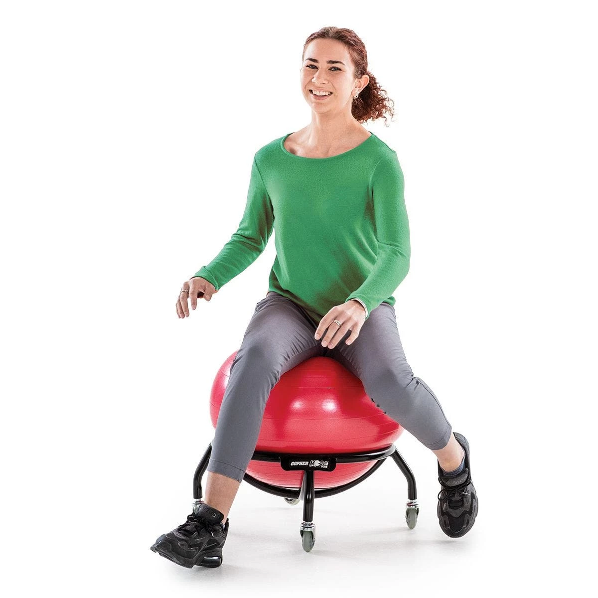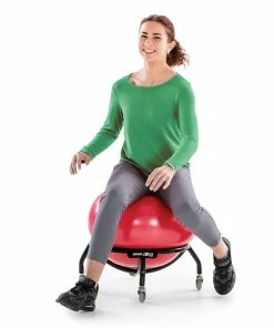 Students can safely and discreetly roll between group activities and breakout sessions on 4 inline 2-1/2” casters, and enjoy the benefits of sitting on a stability ball anywhere in the classroom. For example, backless design promotes better posture and increased blood flow to the brain, and the slightly instable nature of sitting on a stability ball improves core strength and diffuses excess energy.