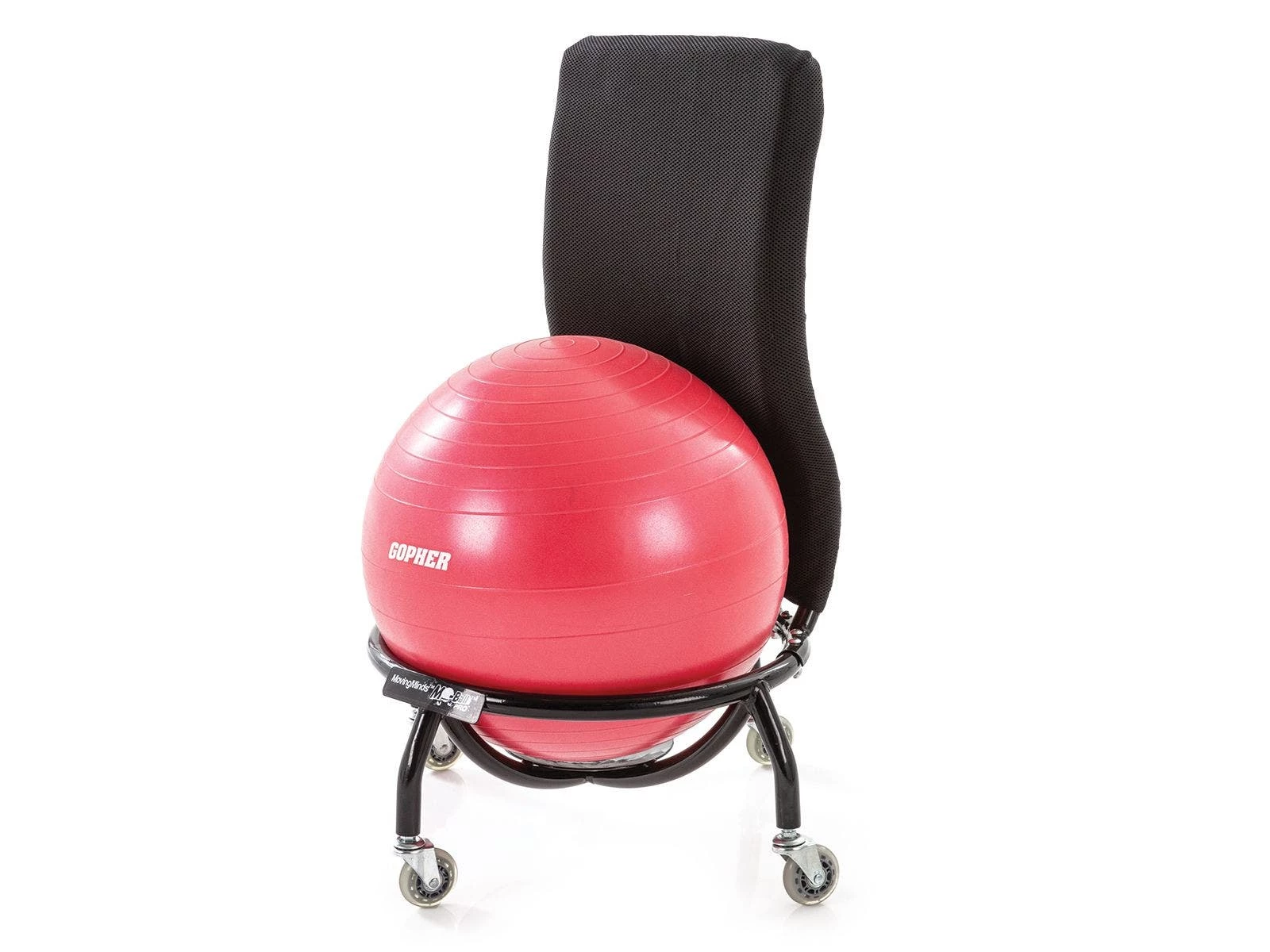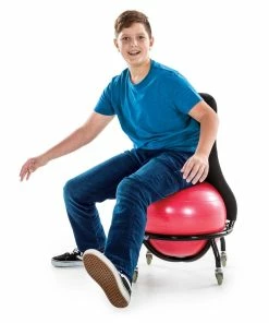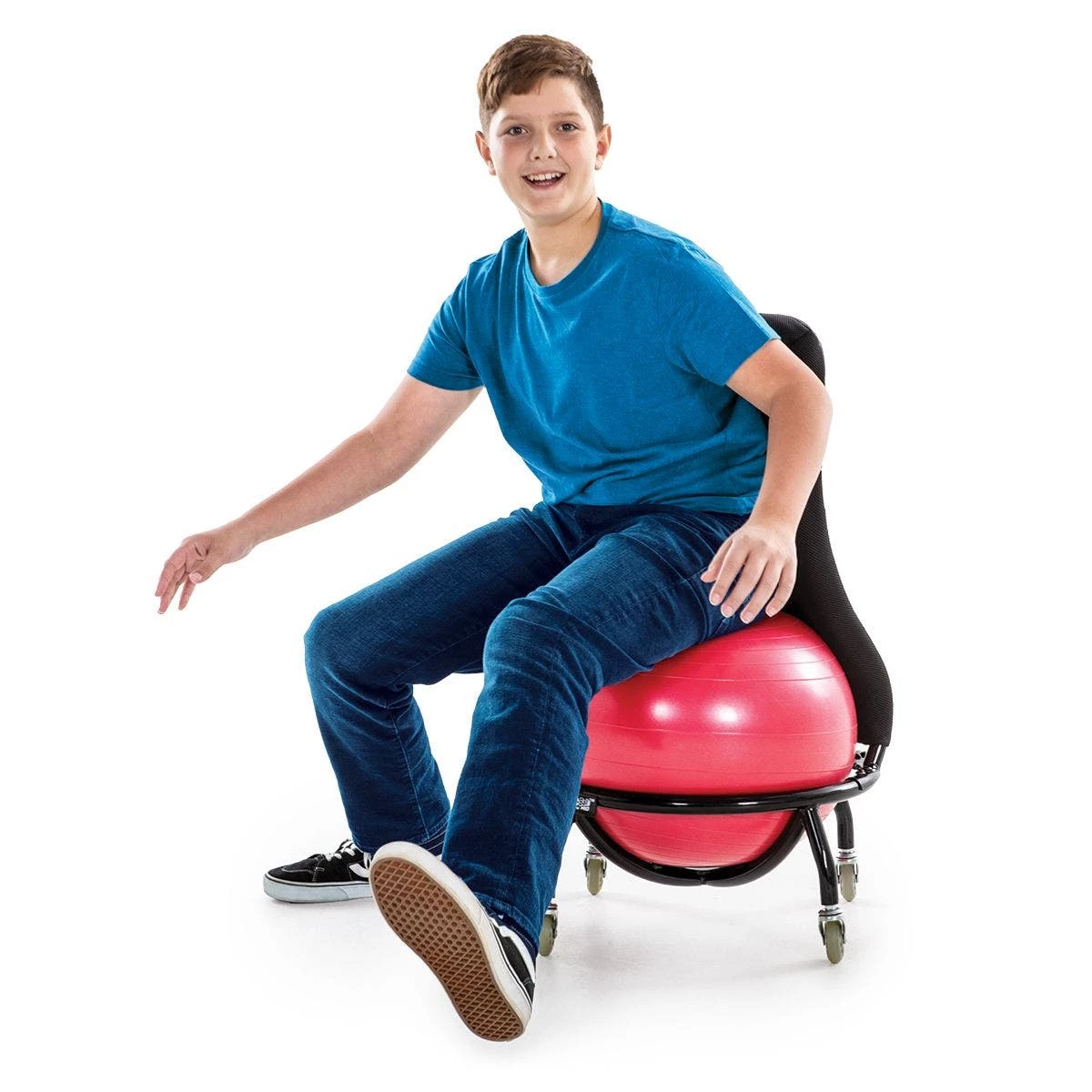 An attached, contoured backrest helps students sit properly on the stability balls for extended periods of time. The ball itself creates an engaging active seat that promotes small, stabilizing movements to build core strength. The strong base is made of sturdy 1″ dia 12-gauge steel tubing with a built-in cradle to securely support the stability ball resting on it. A powder-coated finish stands up to institutional use. The chair rolls smoothly around the classroom on 4 inline 2-1/2″ dia casters. Supports up to 350 lb. Set includes 1 base with backrest and a 45 cm burst-resistant stability ball. Assembly required. Chair is 23″L x 23″W x 30-1/2″H (with backrest); 15 lb.