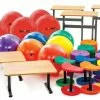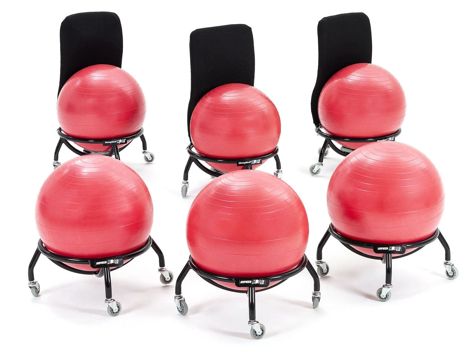 Set includes 3 Mo-Ball Plus (23″L x 23″W x 21″H with ball; 13 lb) and 3 Mo-Ball Pro Chairs (23″L x 23″W x 30-1/2″H with backrest; 15 lb). Each chair includes a 45 cm burst-resistant stability ball and supports up to 350 lb.