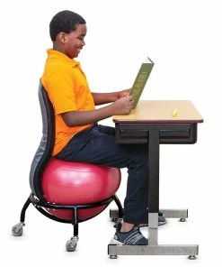 Easily roll these chairs where they are needed to engage students’ cores while learning. Both chairs include a strong powder-coated, 1″ dia steel tubing base with a built-in support that cradles the ball while students sit on it. The backless design of Mo-Ball Plus promotes proper posture, while a contoured backrest on Mo-Ball Pro enhances support for longer periods of time. Chairs move smoothly on 4 inline 2-1/2″ dia casters.