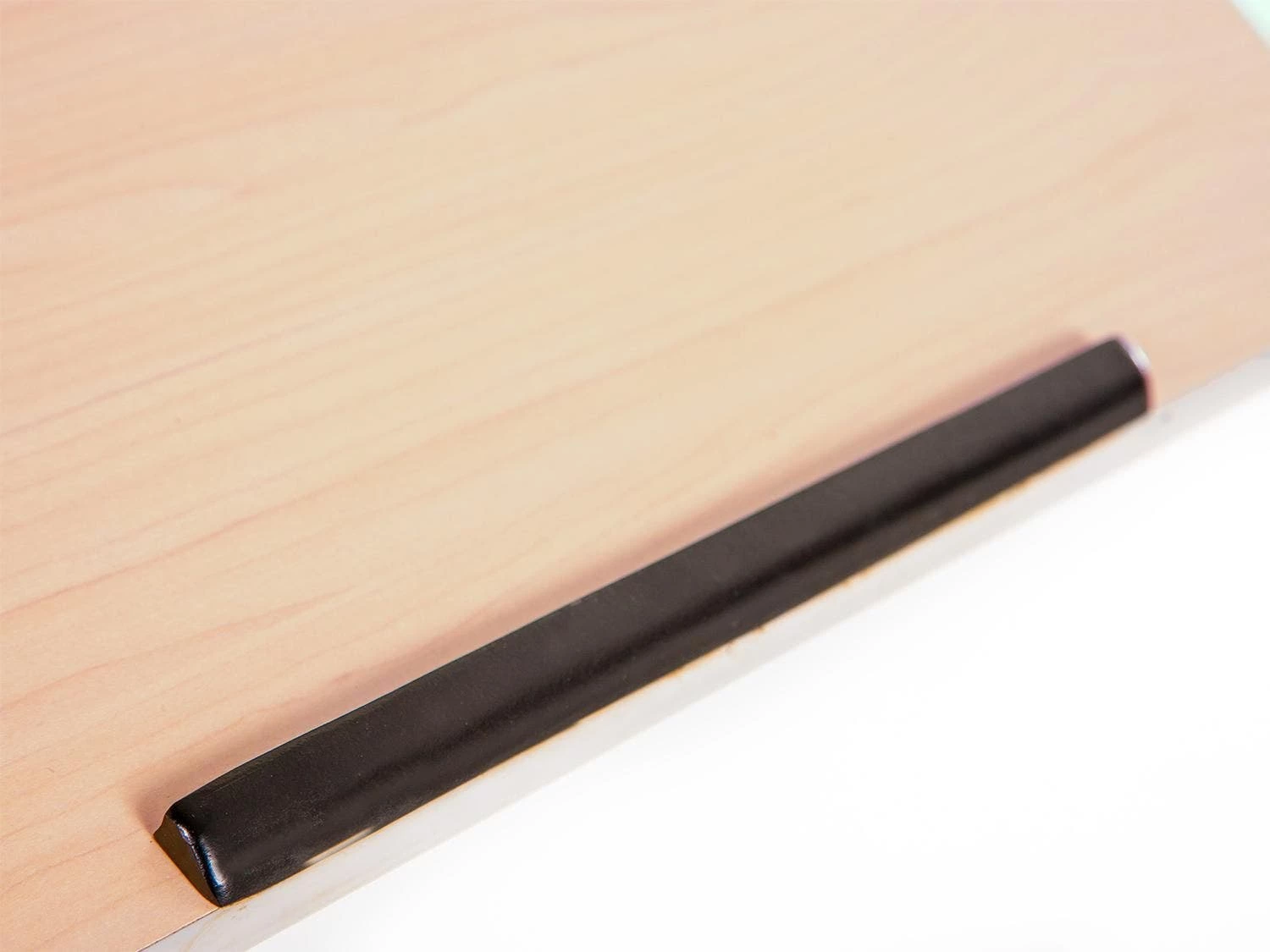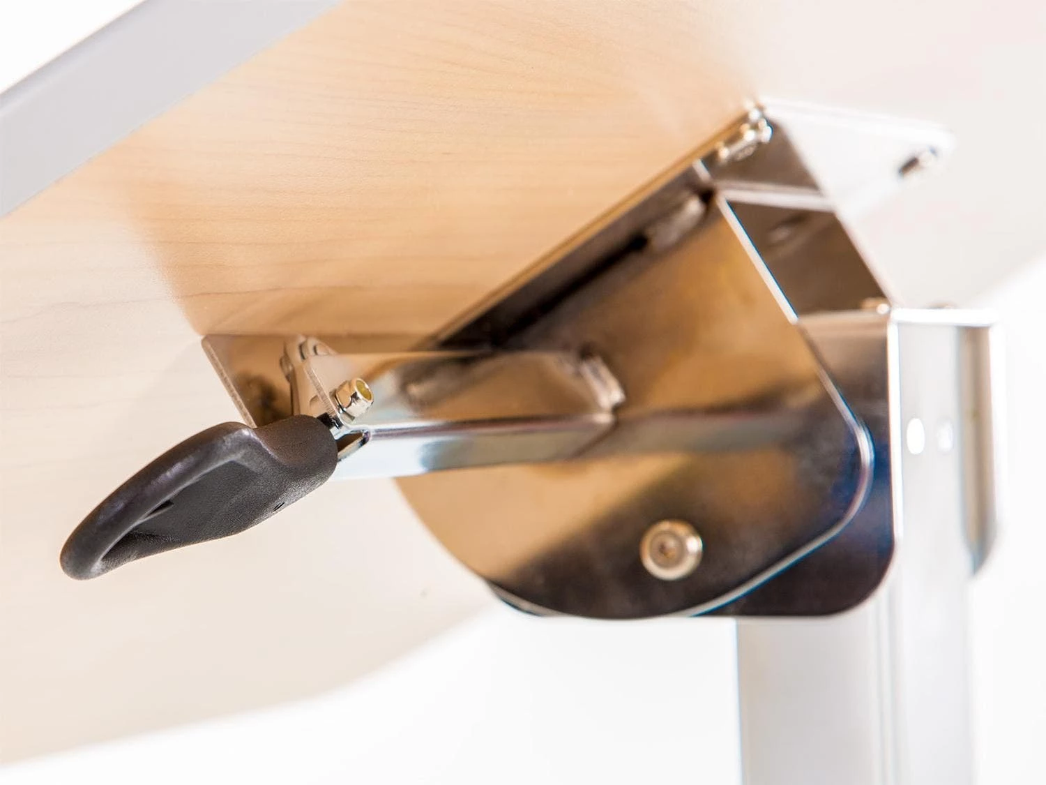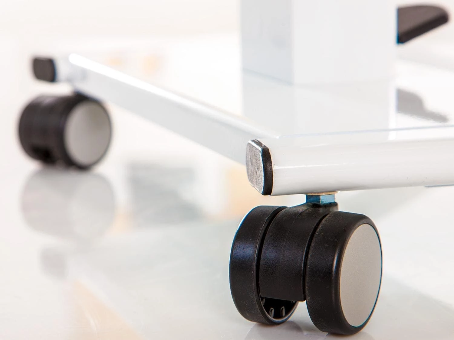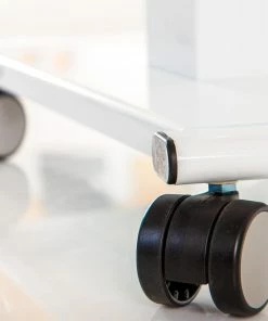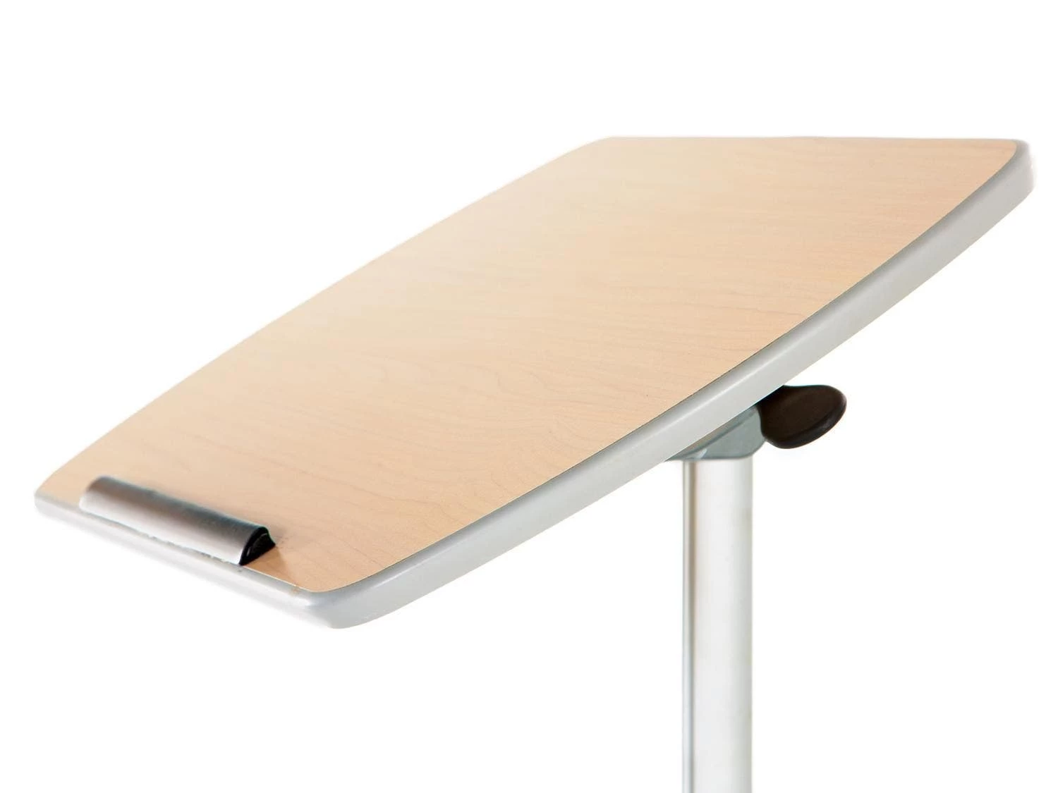 Smaller size and a lightweight design conserve space in small classrooms or offices. This compact size, plus tip-and-roll wheels, make it a breeze for almost anyone to move this desk. Angle the laminate tabletop to use it as a podium; it tilts down completely so the desk takes up even less space when not in use! Adjust the height anywhere between 26″ and 43″H for sitting or standing with a simple foot lever. Lip prevents book, pencils, and other materials from sliding off the top. 25-1/2”L x 17”W; 23 lb.