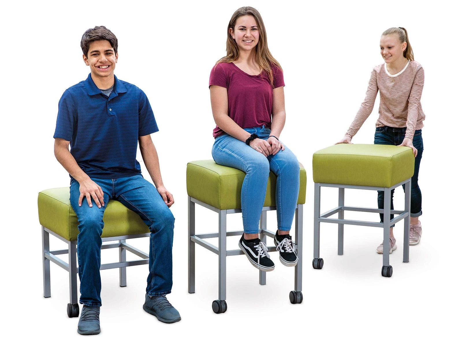 Elite, long-lasting construction makes these square stools perfect for daily use. The padded top on this mobile seating enhances comfort during extended group discussions, while the backless design encourages proper posture for increased blood flow and performance.