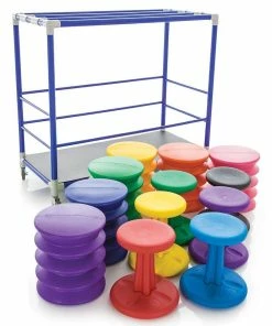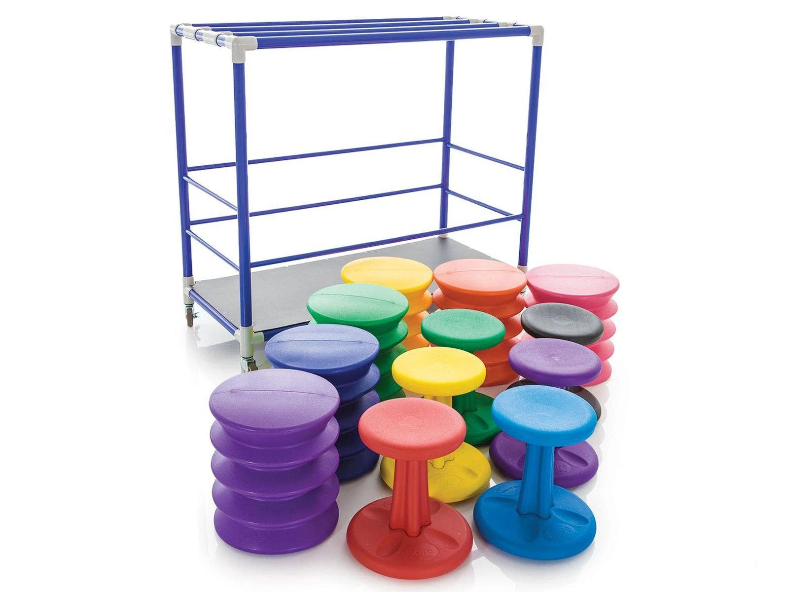 Our entry level mobile classroom keeps students engaged by incorporating active seating anywhere. Convenient cart allows for easy transportation and storage between classes. Choose Elementary or Jr High/High School. Packs vary in equipment sizes only.