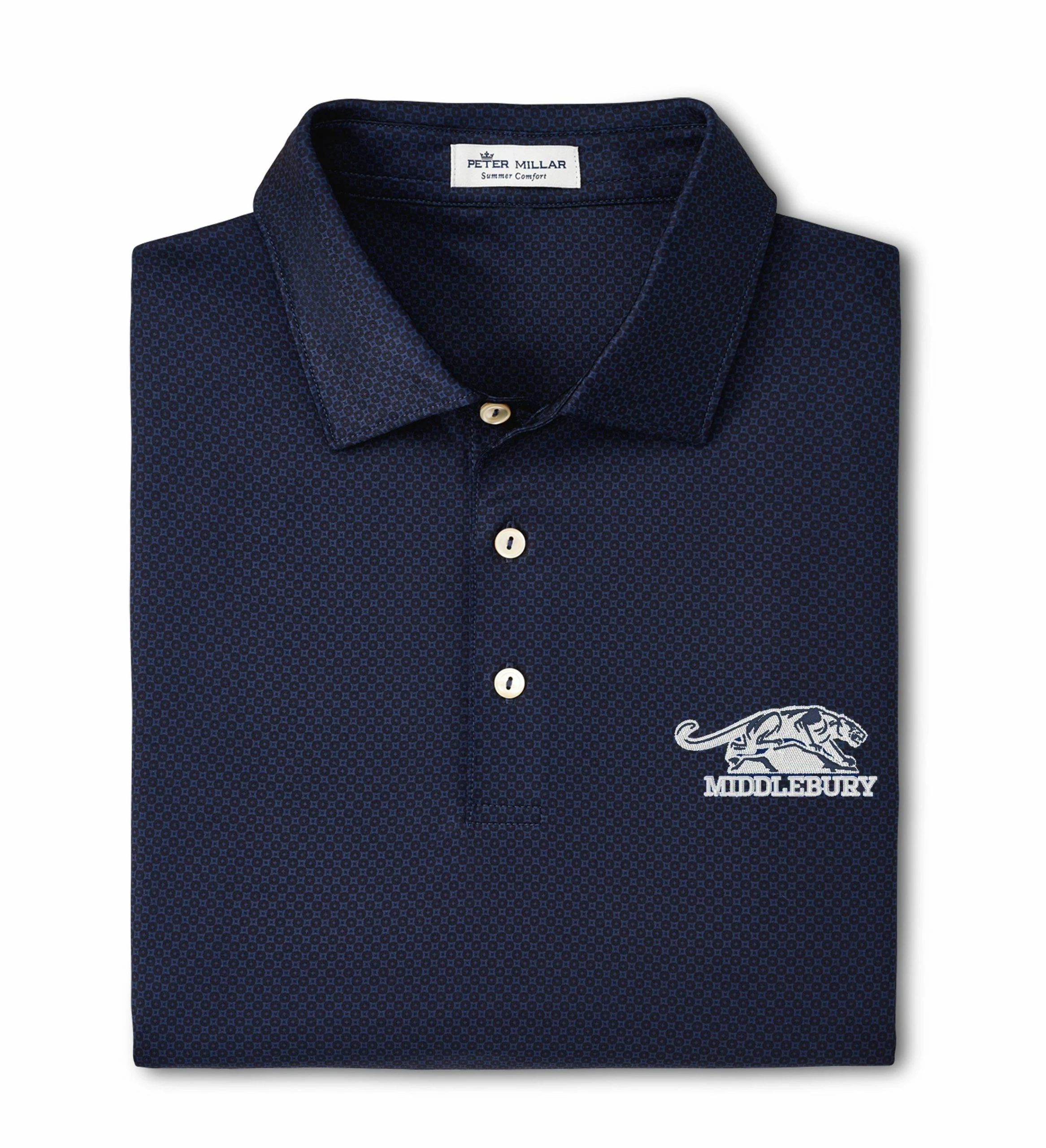 Gear-up for the big game in the Middlebury Dolly Performance Polo. This style is lightweight, breathable, quick-drying and stretches four ways for maximum comfort. Styled with a Sean self-fabric collar, three-button placket and your school’s logo at the chest.