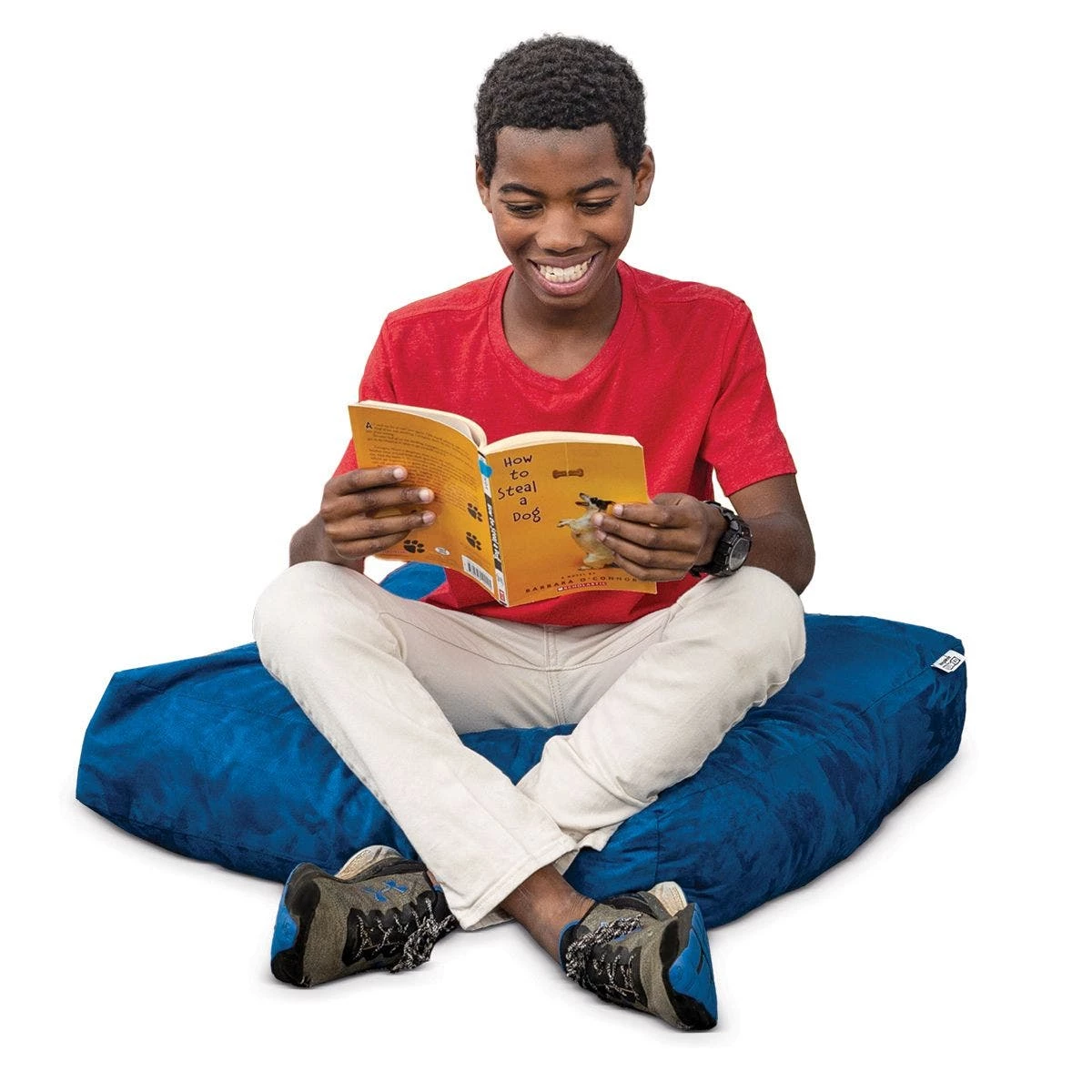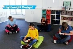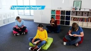 Students study in comfort as this gigantic pillow molds around them. Lay it flat on the floor, turn it on its side, or set up against a wall for a custom seat. This beanbag is filled with shredded ecofoam for comfort. Washable cover is made of premium microsuede for extra durability and includes a hidden zipper for easy removal. Beanbag chair supports up to 175 lb. Complete Set includes one of each color. Individual chairs are available in Blue, Red, Purple, or Lime. Each chair measures 27″L x 27″W x 8″H; 10 lb.