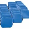 Each beanbag is 48″L x 16″W x 8″H; 9 lb. Supports up to 300 lb. Available individually in Red, Teal, Brown, or Gray, or in a Complete Set with one of each color.