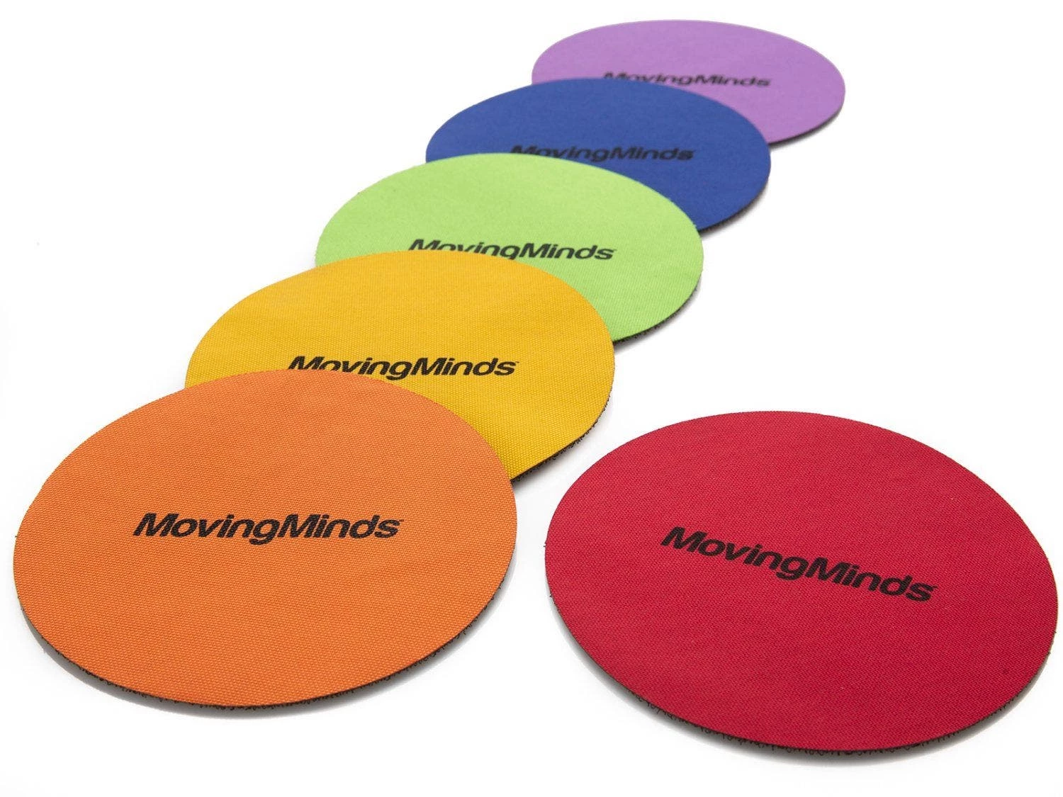 Spots have a hook-and-loop fastener bottom that sticks to carpet and stays securely in place during use. Place them on floors to create assigned seating spots during group assignments. You can also hang them on fabric walls or room dividers for stations that are highly visible from anywhere in the classroom. Simply release the hook-and-loop fasteners and move the spots to a different area whenever needed. The smooth Cordura nylon top is available in Rainbow colors, allowing teachers to quickly assign groups based on color. Each spot is 5-3/4″ dia; 1/2 lb.