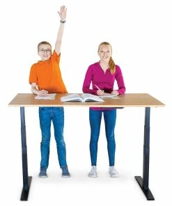 Dual electric motors raise and lower the table to the perfect height. A digital controller with 4 presets makes adjustments quick and easy between classes. A durable steel frame features 3-stage lifting columns to lift the table higher and support up to 250 lb. The large, solid bamboo top can accommodate several students. 60”L x 32”W x 23” to 48”H; 110 lb. Assembly required.