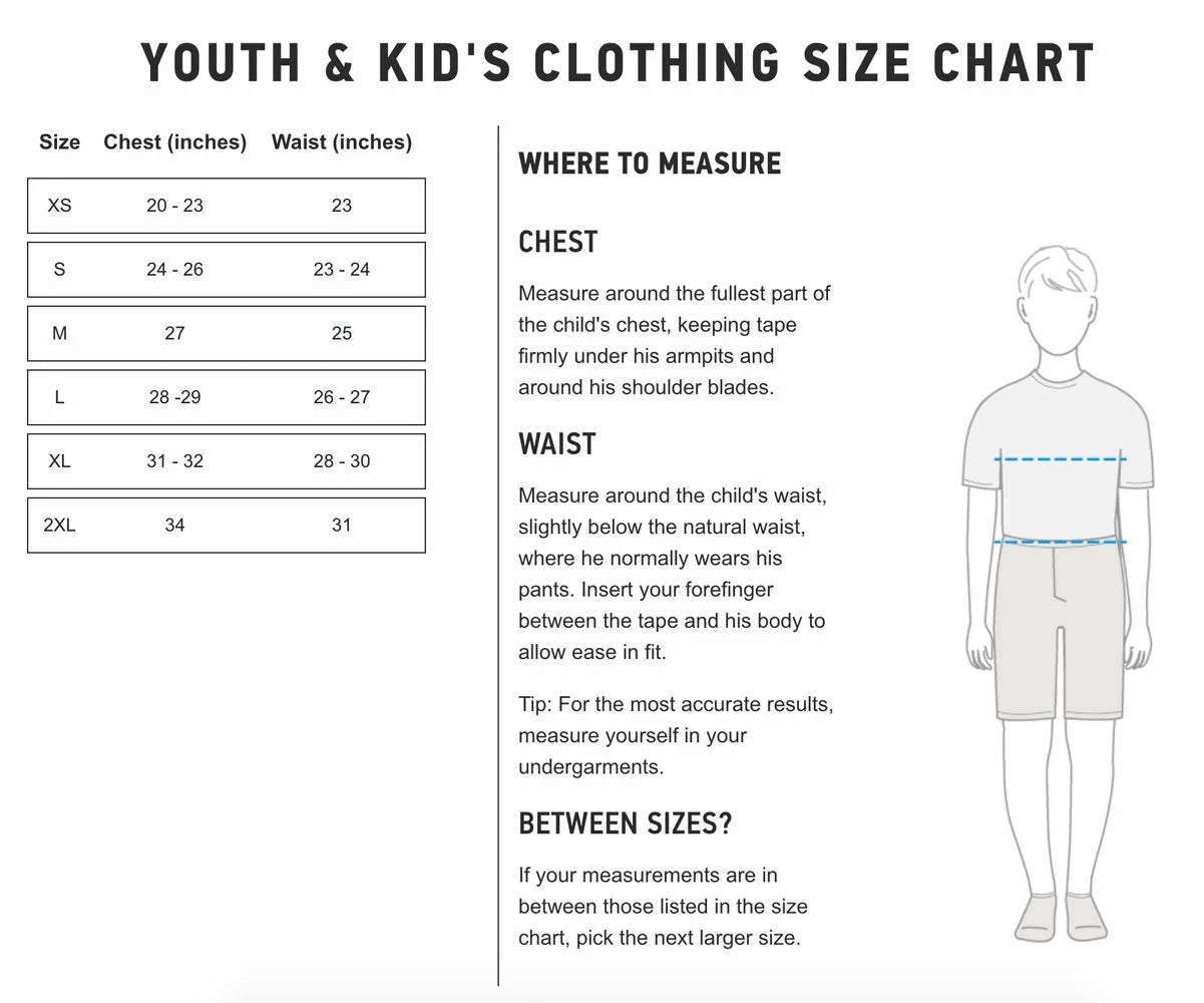 | Size | Youth Small, Youth Medium, Youth Large, Youth XL |