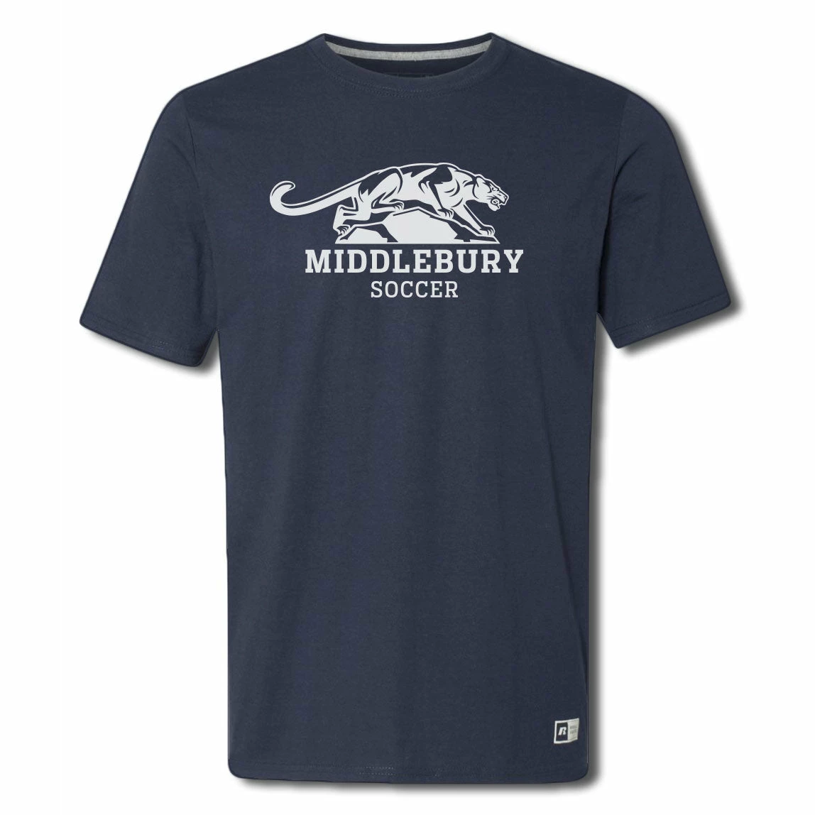 Middlebury Panther Soccer Performance T-Shirt that delivers the comfort, style and performance to fit your active lifestyle. Lightweight cotton blend featuring Dri-Power® moisture-wicking technology, odor protection to keep the fabric fresh, and a UPF 30+ rating to protect you from harmful UV rays. If you prefer the feel of cotton over polyester in or out of the gym, this will become your new favorite t-shirt.