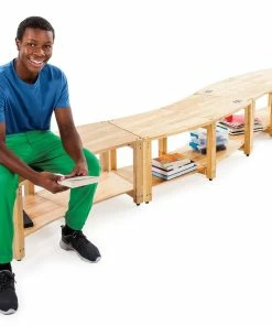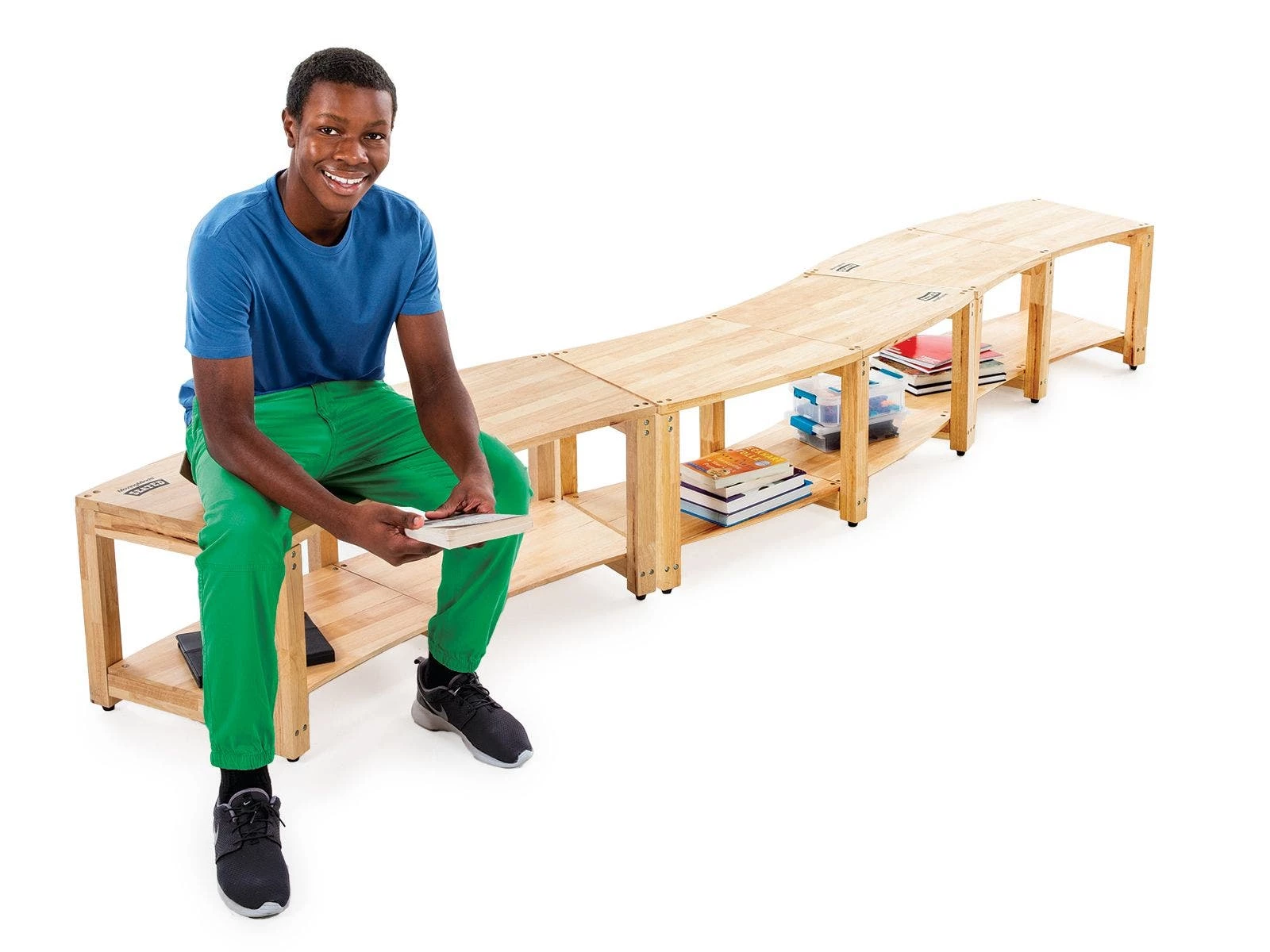 Students can use this bench by itself or teachers can set several benches side-by-side to create a larger seating area for group discussions. Each bench includes ample seating for two students. There is also a shelf under the seat, giving students a place to store books and backpacks.