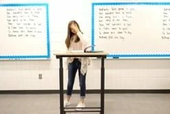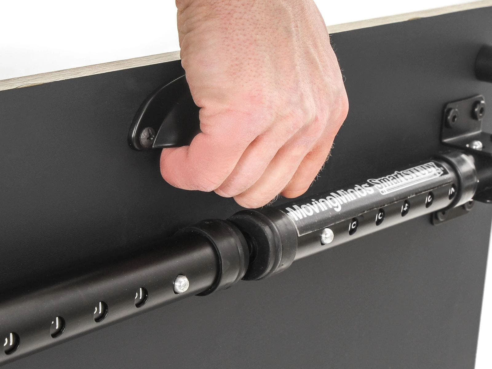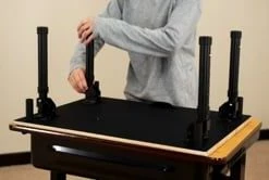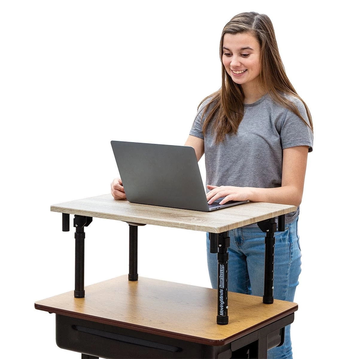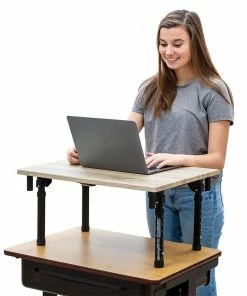 Push pins on each leg make it easy to quickly adjust the desk height from 11-1/2″ to 16-1/2″H in 1″ increments. A 24″L x 18″W work surface provides students with ample space and fits on most standard desk surfaces. You can also use this desk as a stable work surface while seated on the floor. Legs include slip-resistant rubber feet to keep the tabletop desks in place during use. When lessons or classes end, simply fold the legs for compact storage. A carrying handle makes it easy to transport the desktop.