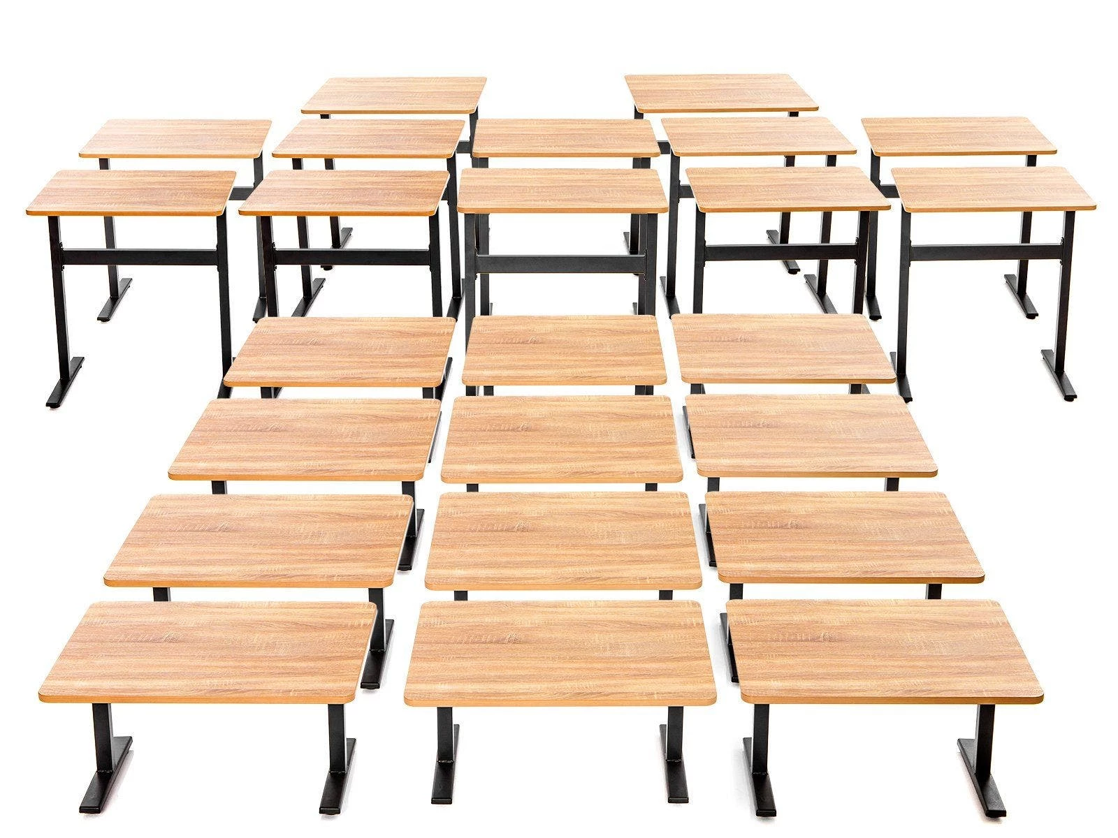 Standing-desk use has been shown to increase concentration and time on-task, so raise the bar for your classroom by raising the desks themselves. Packs include two great standing options to get students on their feet and improving performance. Our Standing Desks are built in 32″H and 38″H sizes so every student can stand up for their health. They are built with strong powder-coated steel frames and melamine desktops to ensure they last under daily classroom use. Plus, our durable tabletop desks quickly add 14″ to conventional desks, turning them into economical standing desks in seconds. Packs of 12 include 6 SmartStudy™ Standing Desks and 6 SmartStudy™ Tabletop Desks. Packs of 24 include 12 of each. Choose Elementary, Middle School/Jr High, or High School. Additional pack information is below.