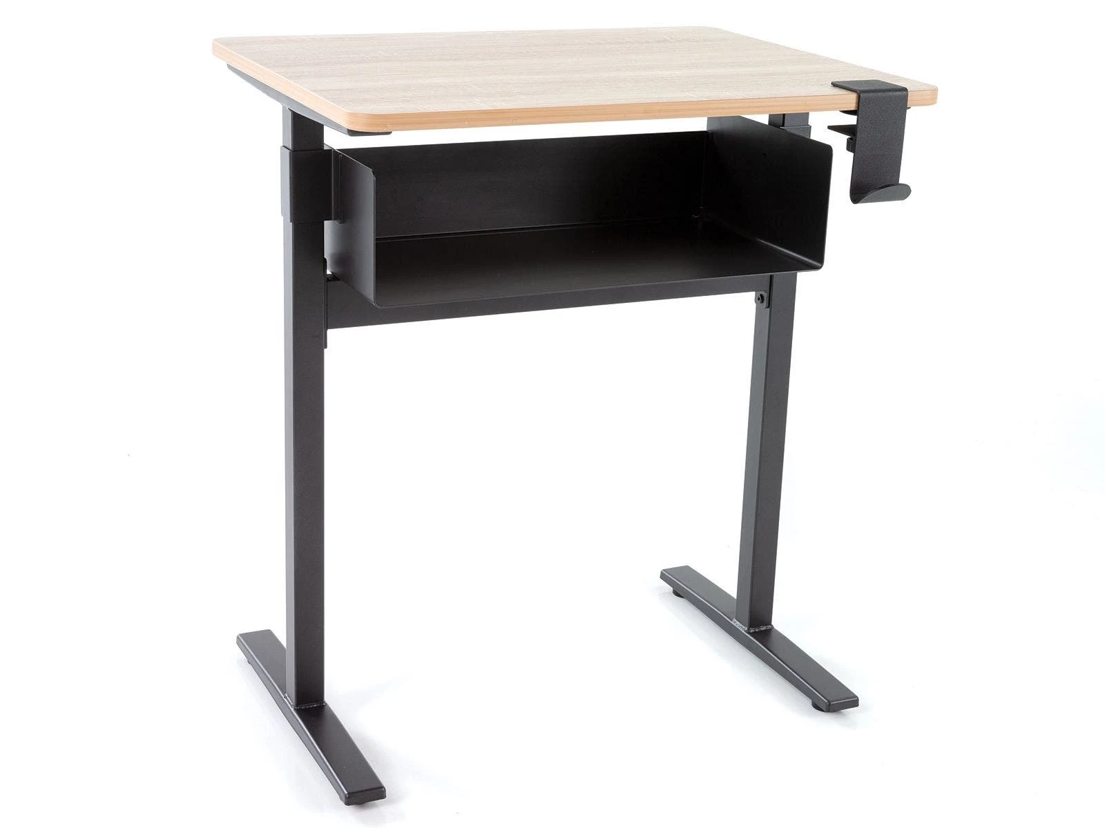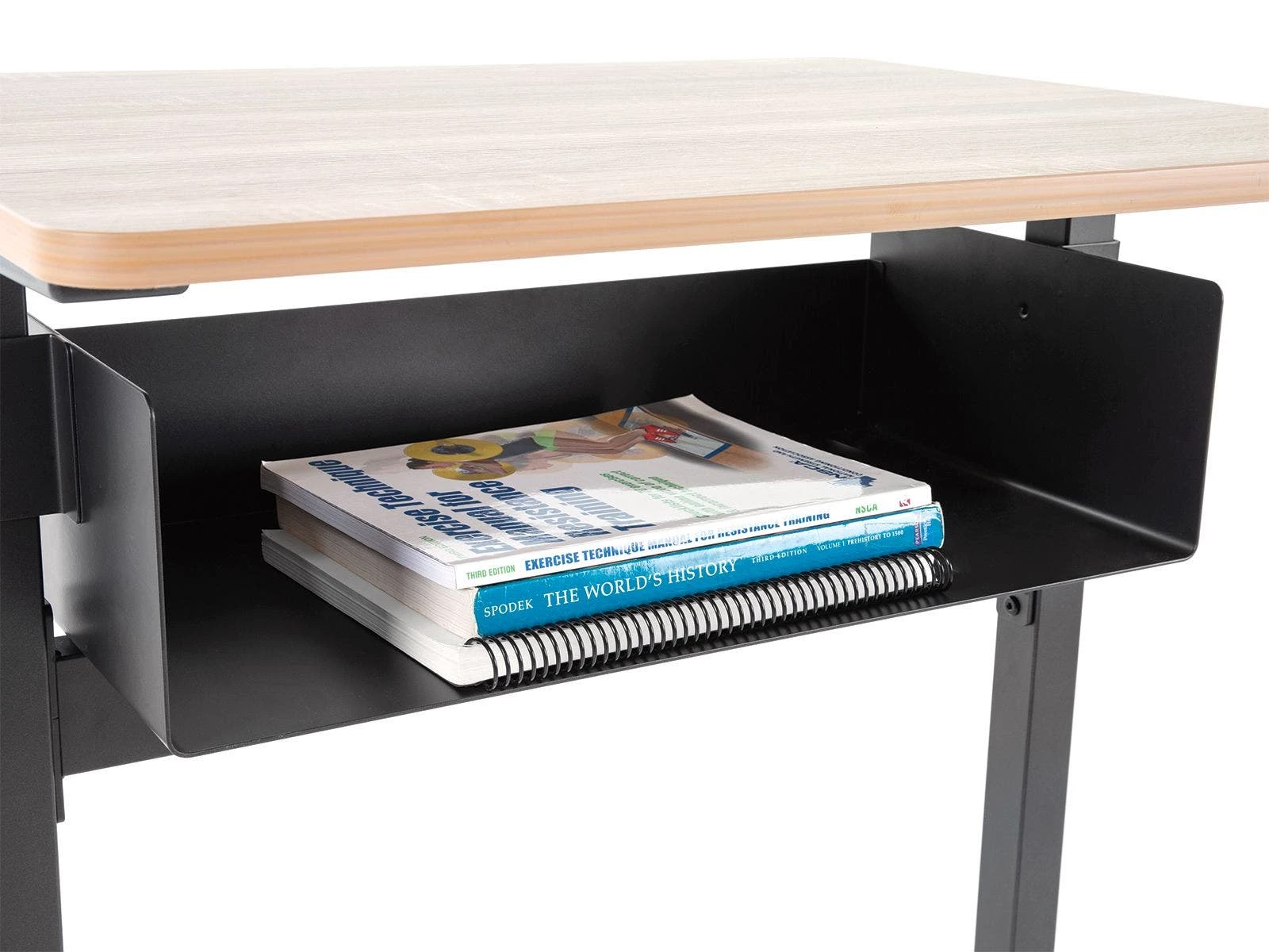 Each standing desk with storage lets students keep folders, notebooks, textbooks, and laptops right at their desk! Book boxes easily attach to the desk frame for a secure connection that supports up to 25 lb. They vary in size to accommodate either a regular desk or an adjustable desk. Teachers can clamp the storage hook onto whichever side they choose to give students a place to hang a backpack or jacket. The book boxes and storage hooks are made of steel and feature an extremely-durable matte black powder-coated finish that stands up to consistent institutional use.