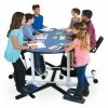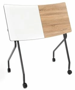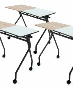 These flip-top nesting tables are a great addition to any classroom, media center, or collaborative workspace. Teachers can simply release the spring pin to easily flip the table top down for compact storage between use. Table features a half-melamine, half-whiteboard top that promotes collaborative work between students at workstations. Desk features a durable powder-coated steel frame for long-lasting use. Four casters allow for easy mobility. 46″L x 25″W x 38″H; 48-1/2 lb.