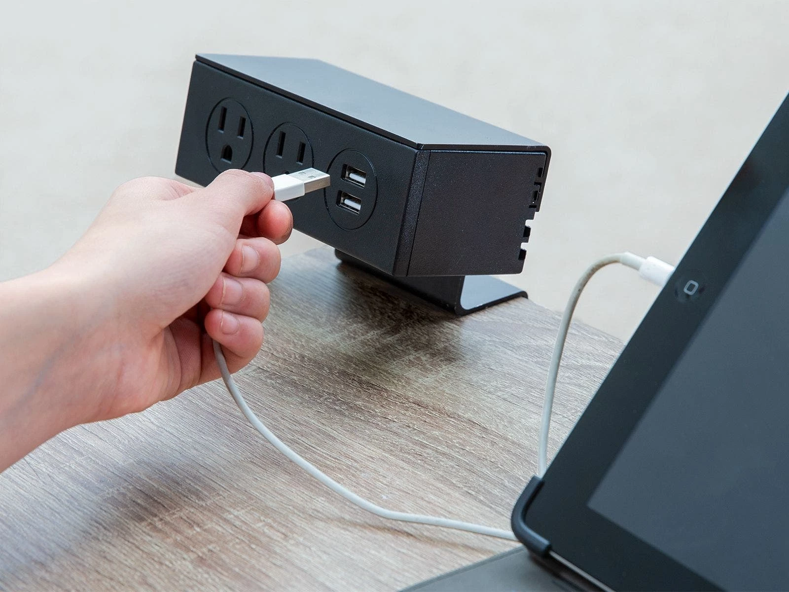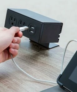 The smooth matte black frame is made of powder-coated steel to fight rust and withstand daily classroom use, and the wood-colored melamine top looks great and resists wear. Leveling feet help students concentrate without the concern of a wobbling desk, and their rubber construction protects floors from dings and scratches. These desks easily fit in most budgets whether you need just one or intend to stock the whole school. Charge devices while standing at the desk using the detachable charging unit (sold separately). Charging unit is 5-1/2″L x 4″W x 5-1/2″H; 2 lb.