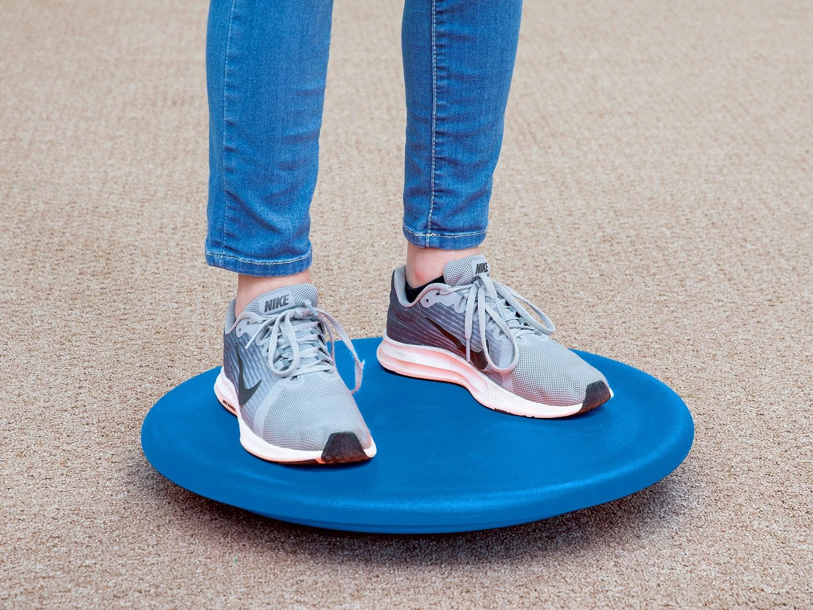 Provide students with the opportunity to improve their balance and activate their core while standing on floor wobblers. Place the plastic wobblers next to the table and let students fidget while standing. A slightly rounded bottom encourages movement in any direction, while an anti-tip ring keeps users upright. Store the wobblers on shelves under the table between use.