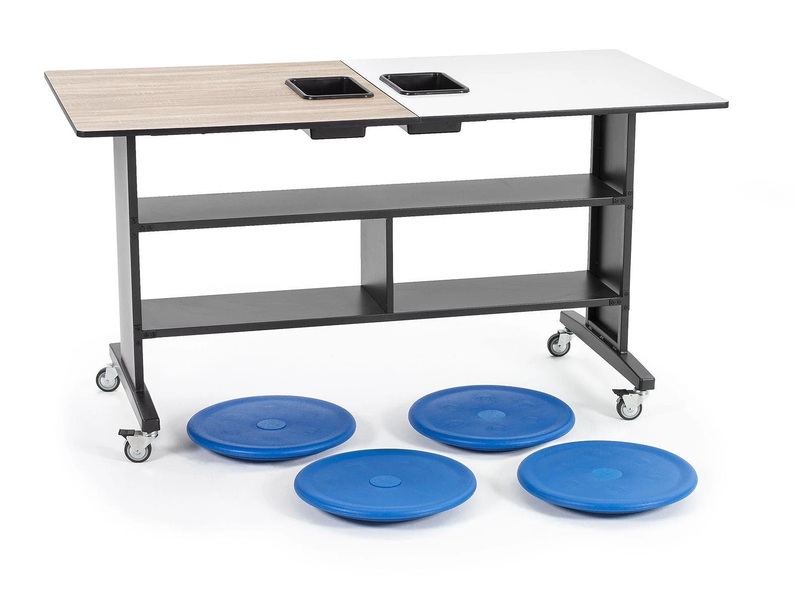 Add extra activity as students work together around this collaboration station. The SmartStudy Team Innovator Table includes a combination whiteboard/melamine top that promotes brainstorming, while the Kore Floor Wobblers let students balance and work their core as they work together.