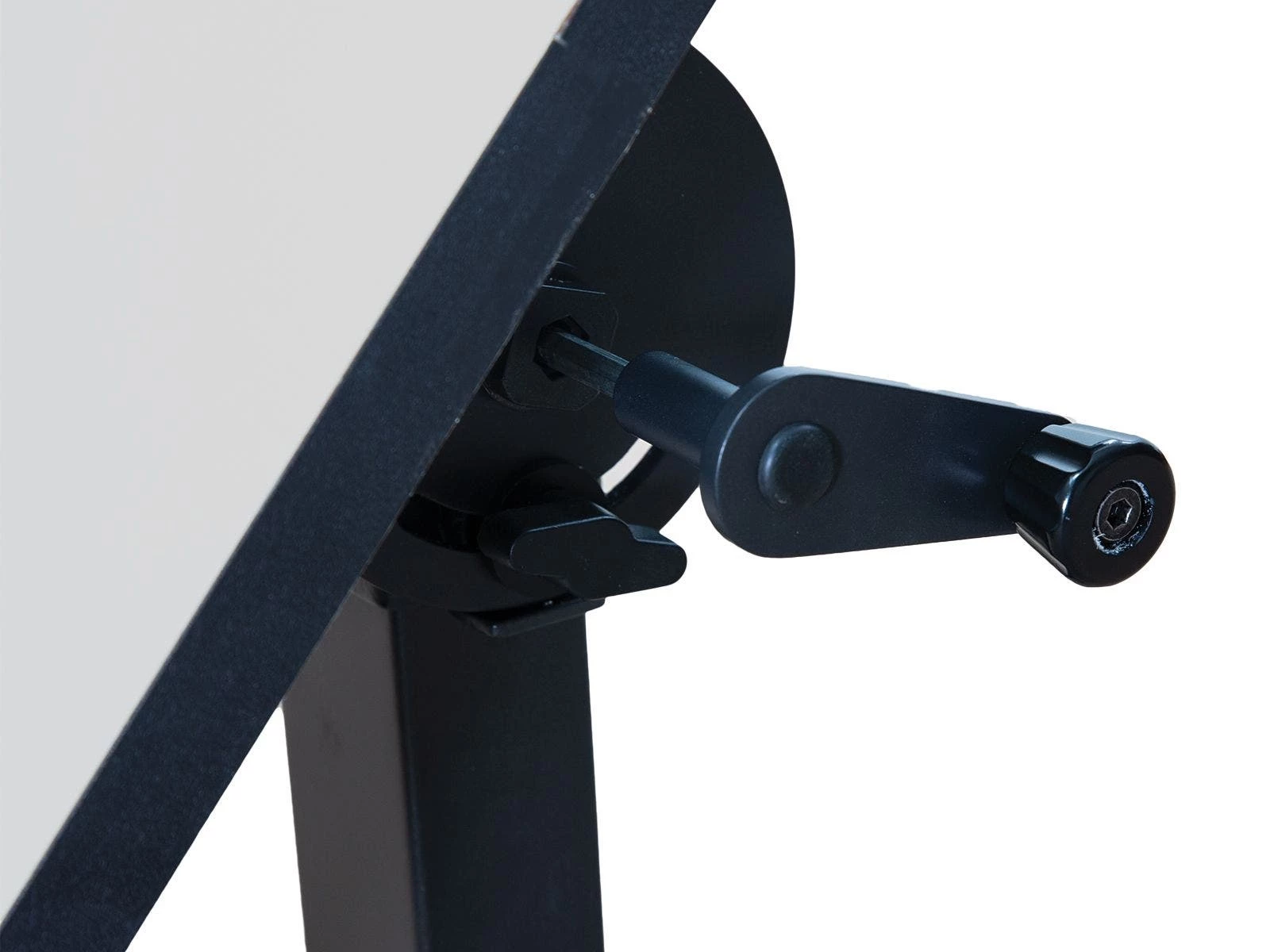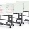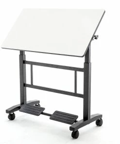 Versatile desktop adjusts from 34-40”H and tilts among 0° for normal work, 45° for art and design projects, and a full 90° for lectures and presentations. At a full 90° tilt, the desk acts as a conventional whiteboard for presenting work to the entire class.