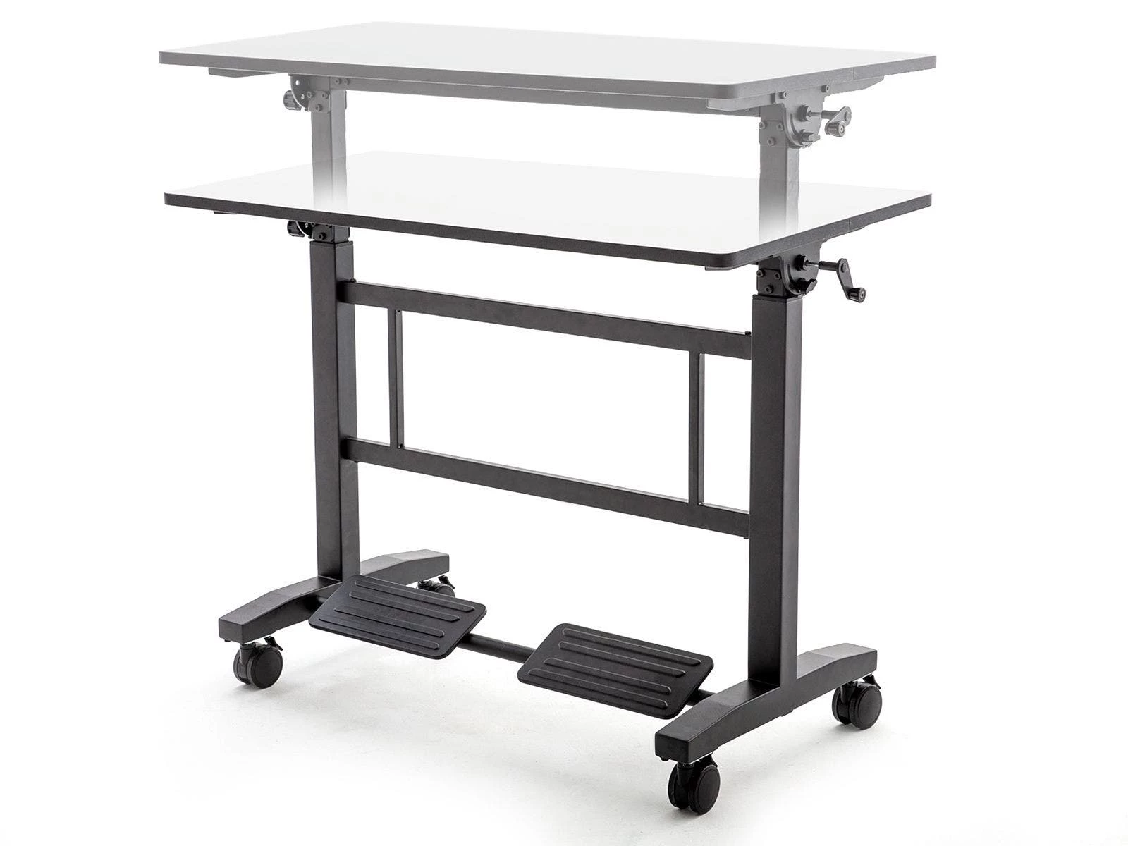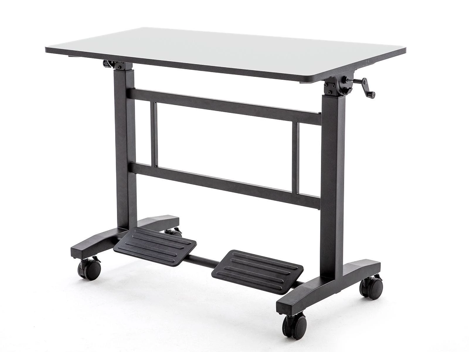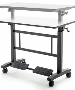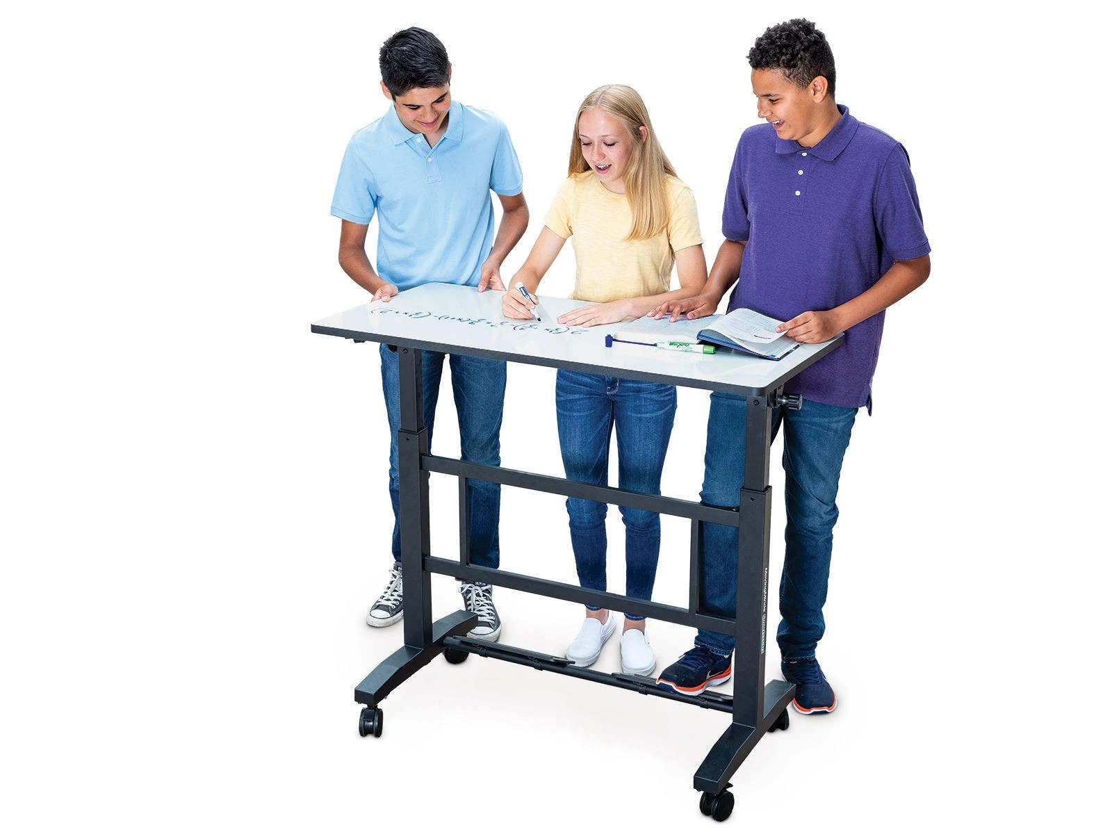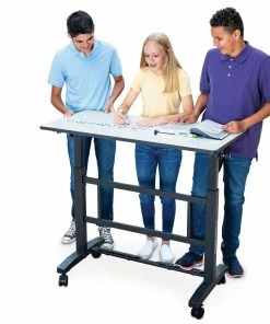 The dry erase top on our premium standing desks makes it easy to share notes, build upon ideas, and show work. The 46”L x 24”W desktop allows 2 students to easily collaborate and solve problems in a shared space. The smooth edgeband and heavy-duty matte black powder-coated frame add support and durability for institutional use.