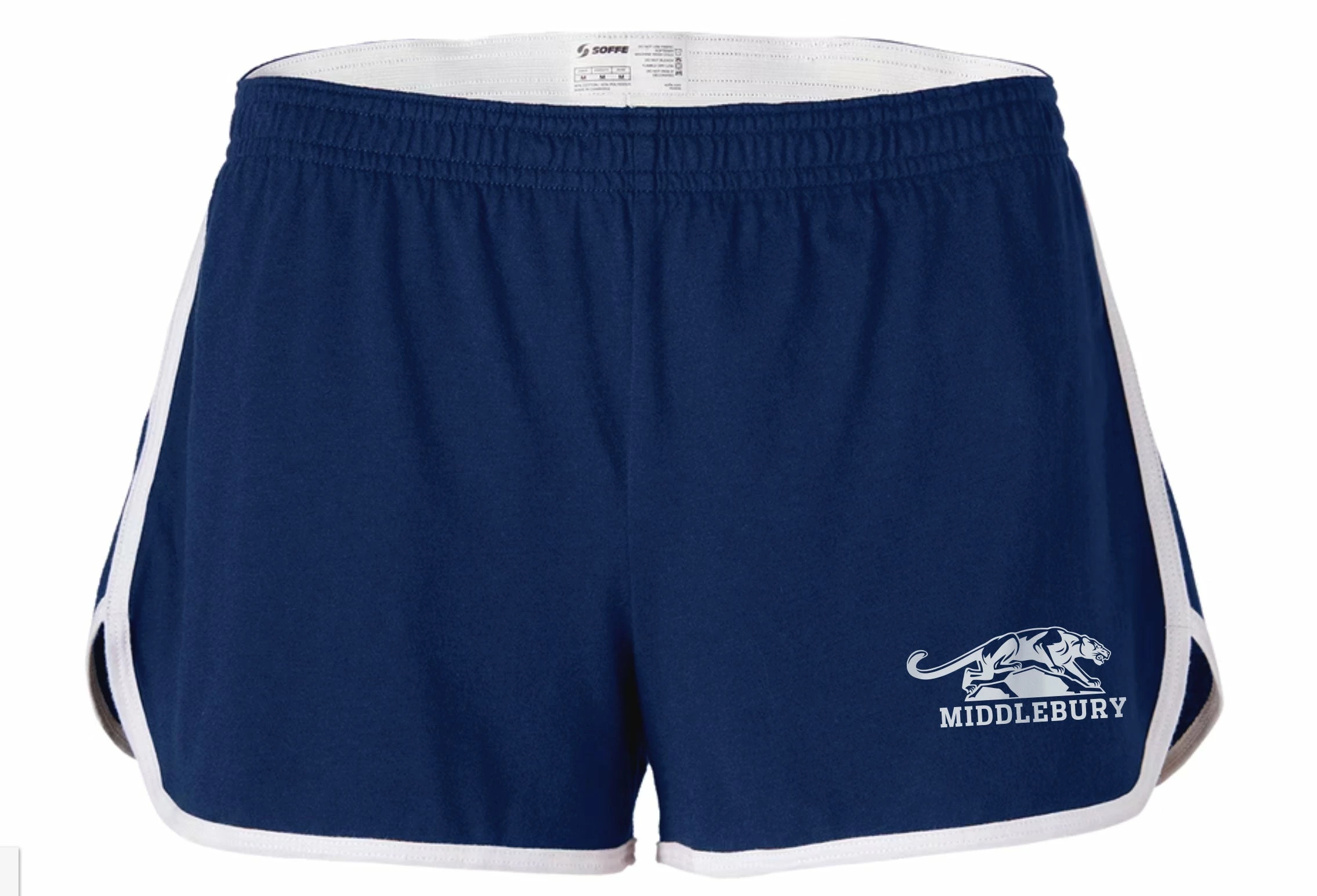 This short has been around for many years. The Middlebury “OG” gym short by Soffe brand (style 5707v).
