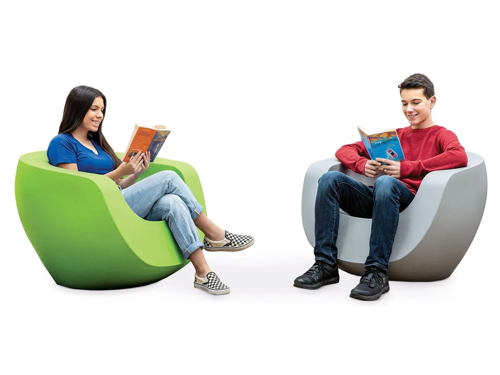 Oversized chair with a well-supported, 13″H seat sits low with an angled back for enhanced comfort while studying. 100% recycled plastic construction features a seat with a drain hole for use outdoors. It is rust proof, waterproof, and extremely impact resistant, making it a great asset for use in indoor classrooms and in outdoor learning spaces.