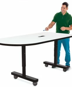 The large dry-erase top on this table allows everyone in the group to visualize notes and ideas for a tangible approach to collaborative learning. Rounded 36”W top fosters an inclusive environment for simultaneous participation from all students, and lack of sharp edges promotes safety.