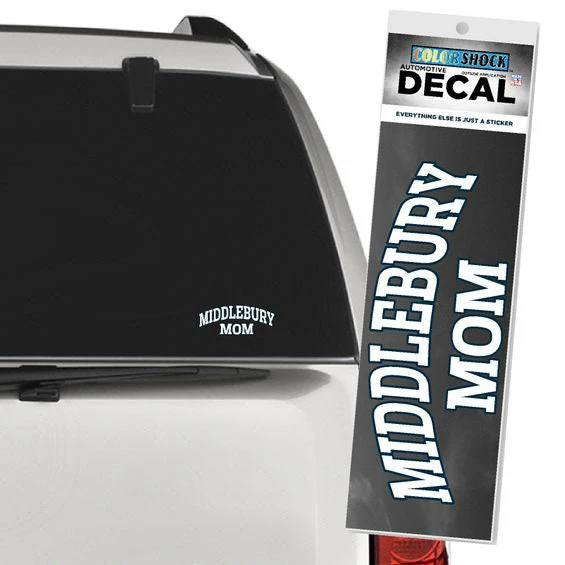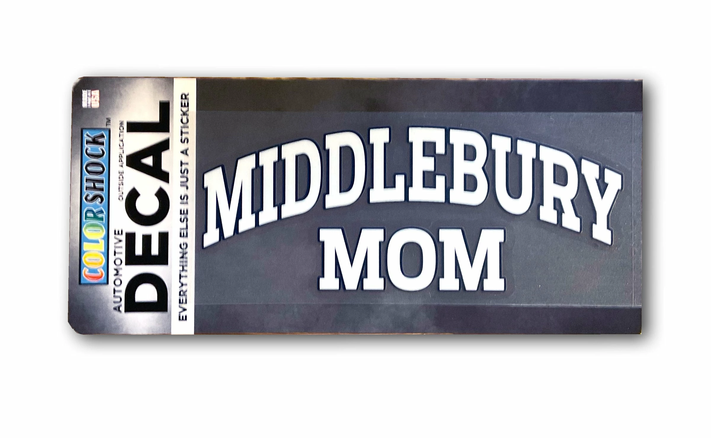 Middlebury MOM Decal.  Yes, this is what your mom wants on her SUV. Works on windows, bumpers, car doors, water bottles, Harleys, electric bikes, skateboards … pretty much anywhere-anything.