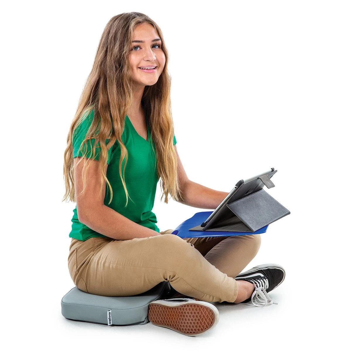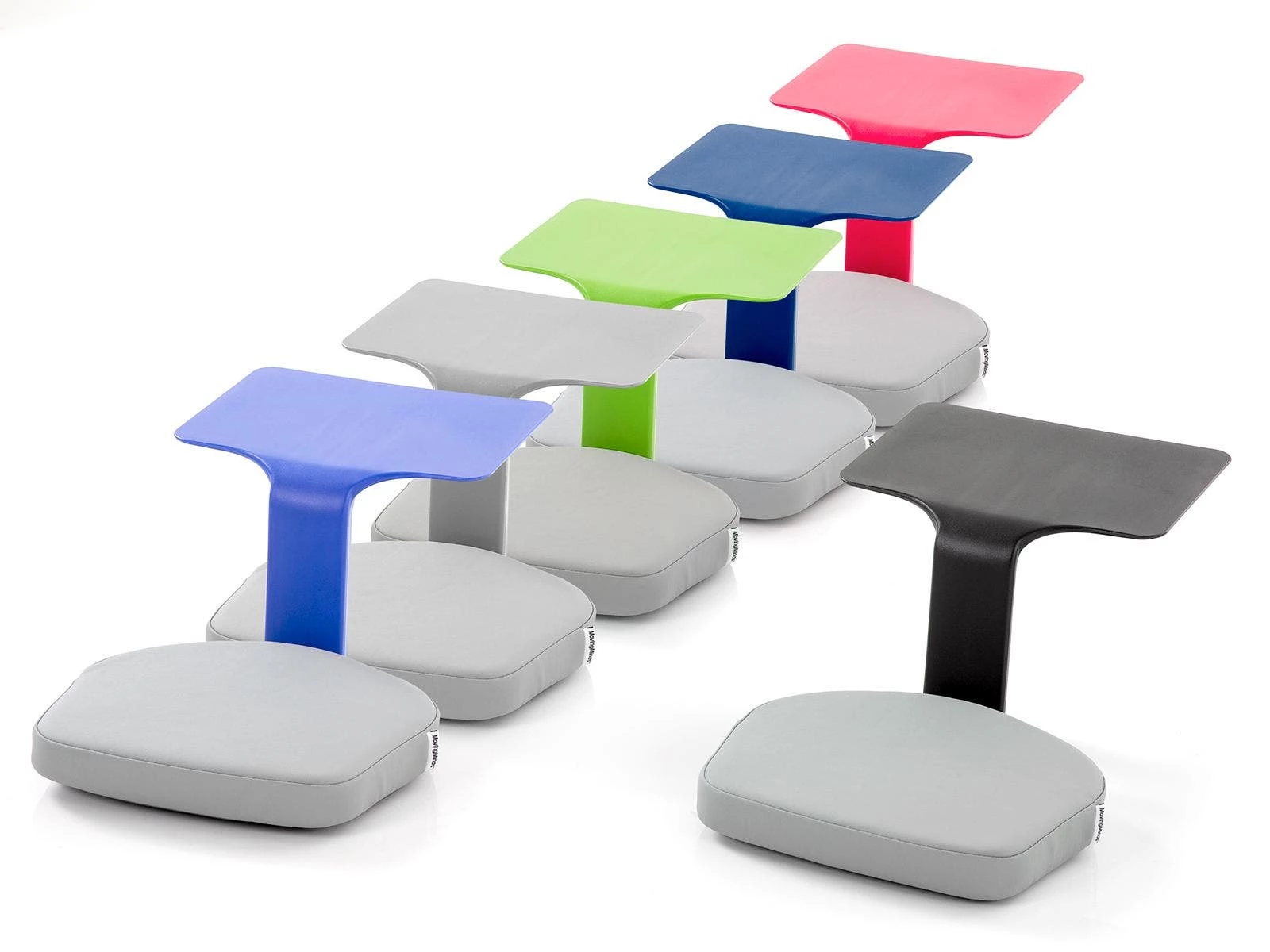 Students simply sit anywhere they want, place their book, notes, or tablet on the 11” x 14” desktop, and study alone or discuss assignments in limitless group seating arrangements. When students sit on the seat, the desktop becomes anchored for a sturdy work surface.